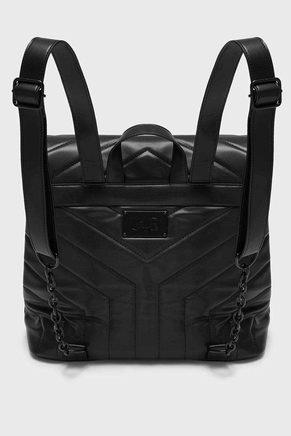 Bag adorned with chains. Includes long and short shoulder straps.With interior pockets. Zipper closure.