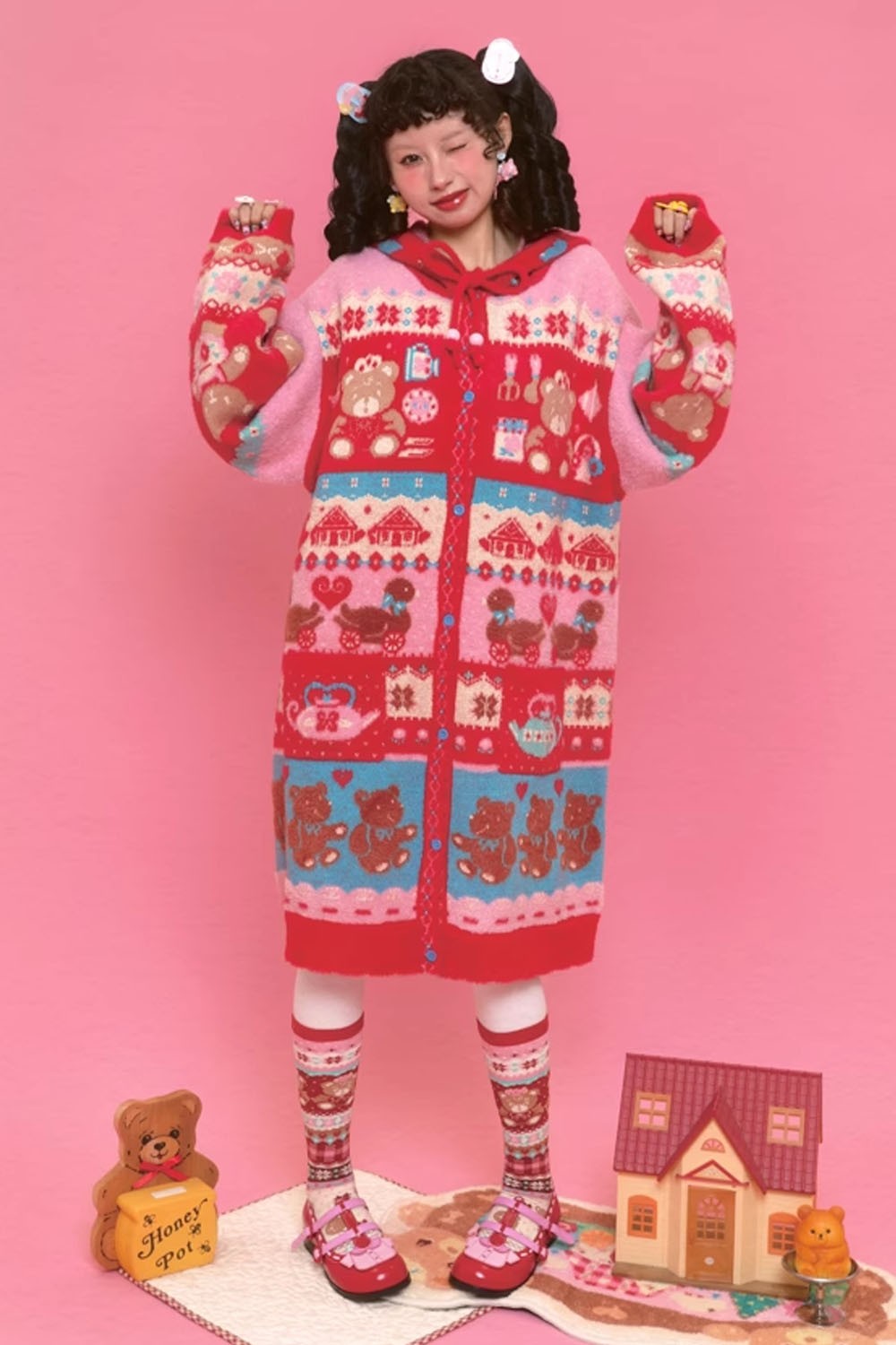 Bear Tea Room Knitted Hooded Dress ~ Lutra Jump