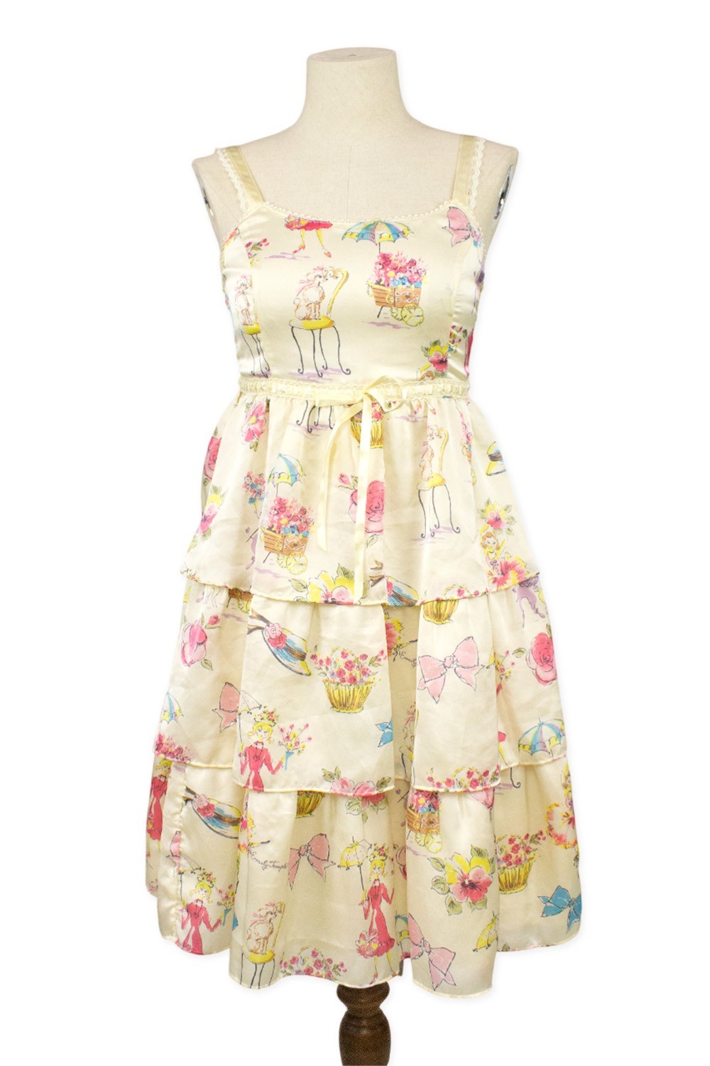 [Second Hand] JSK Ballerina Print Dress in Cream - Emily Temple Cute