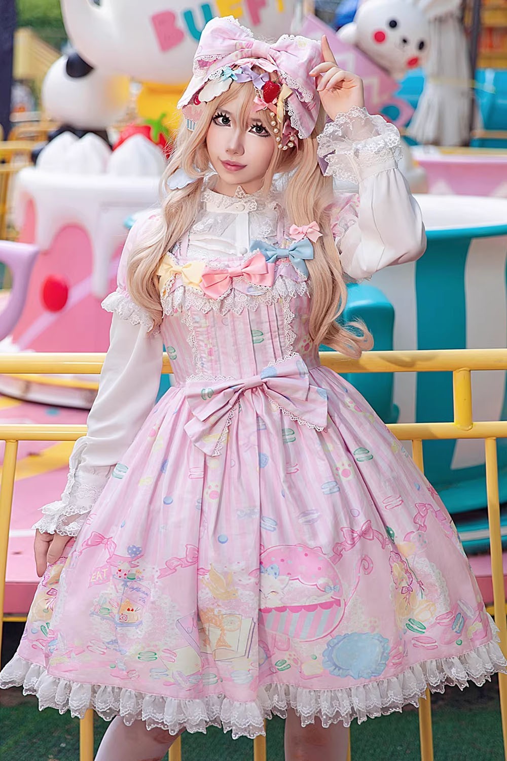 OP Lolita Dolly Macaron Dress in Pink + Headbow - Infanta