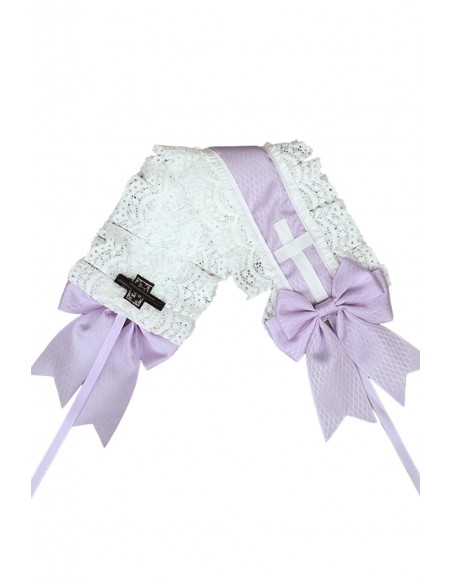 Bow with thick ribbon adorned with metal crosses.With a metal alligator clip.Size: 9x6cm