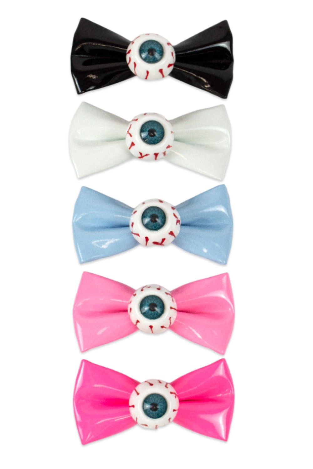 Hair clips. Vinyl bow with plastic eye and metal clip. 1 unit