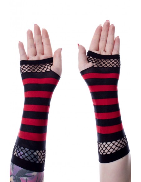 Striped Mesh Sleeves Black x Red - Poizen Industries