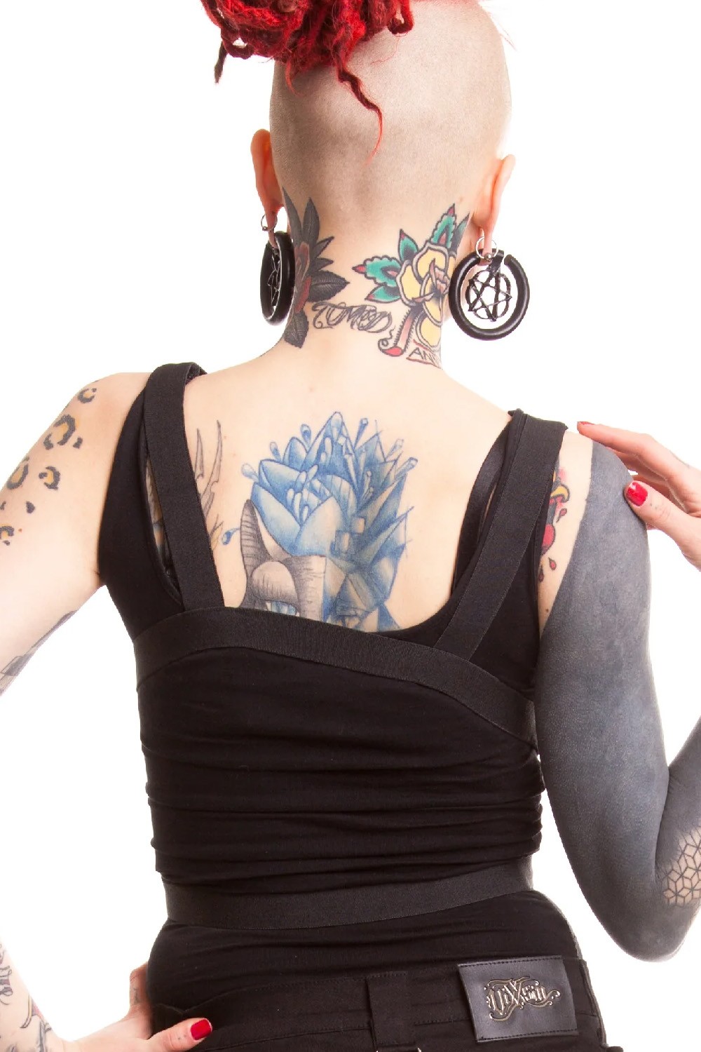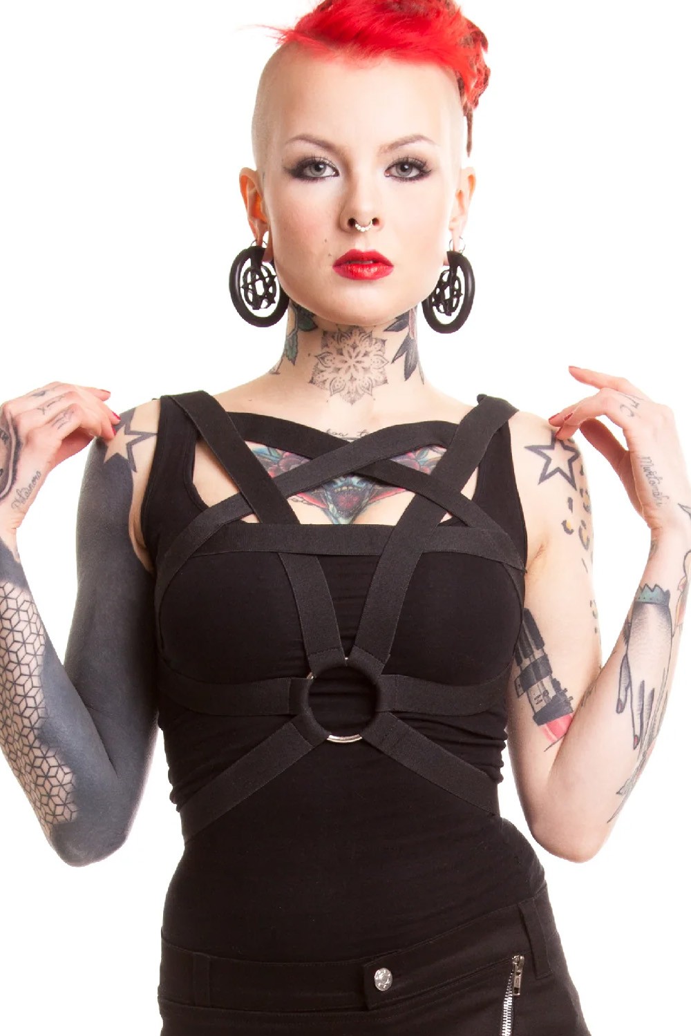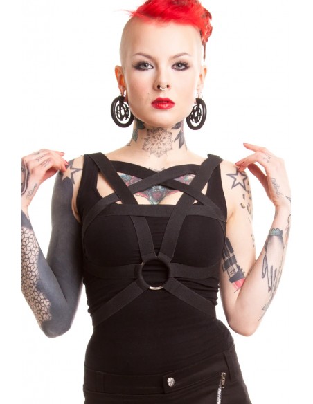 Highly elastic harness that molds to your figure in an inverted pentagram shape.