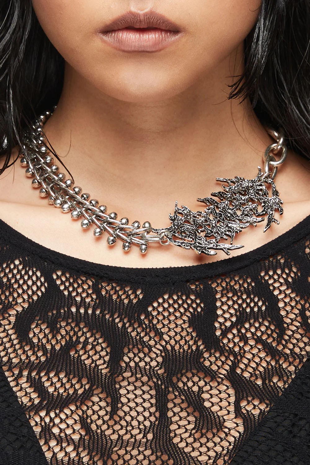 Adjustable chunky necklace made with metal rings.Lobster clasp. Antique silver coloured finish.Material: Zinc and Iron