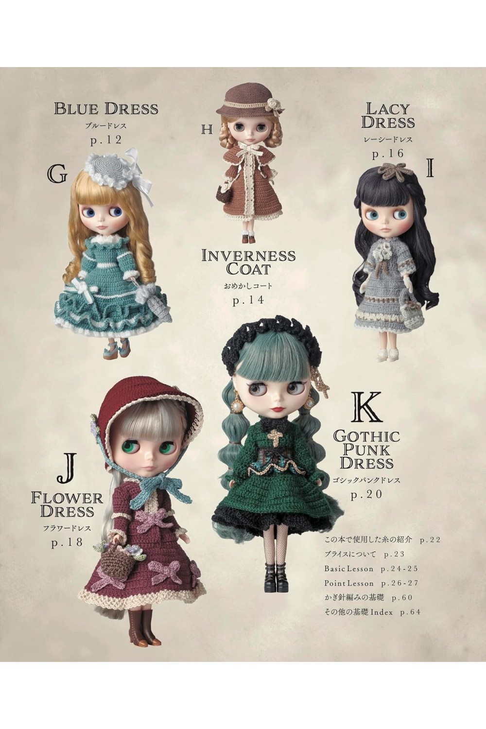 Clothing pattern book for Blythe dolls (or 1/6 scale dolls). This edition features classic Lolita-style patterns.