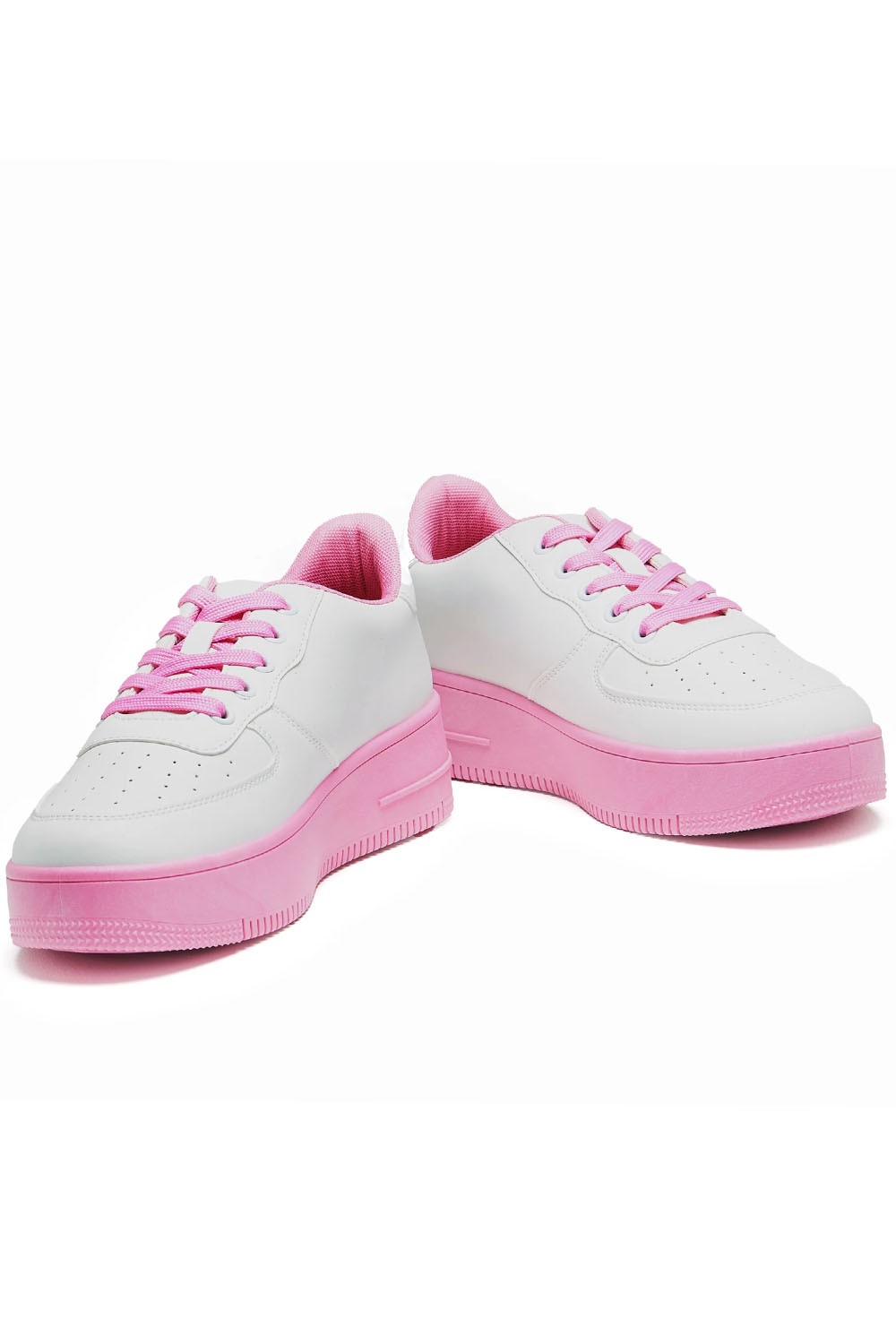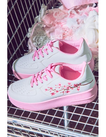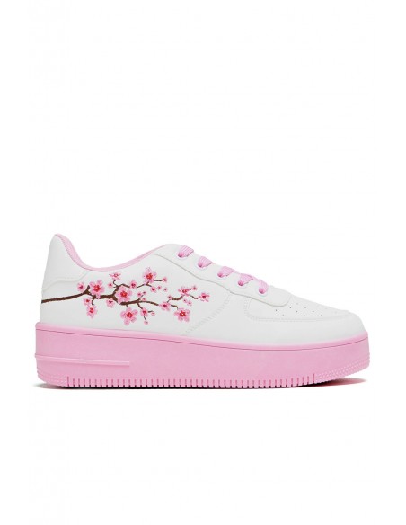 Lace-up sneakers with platform sole and embroidery. 4cm heel. Made in PU.