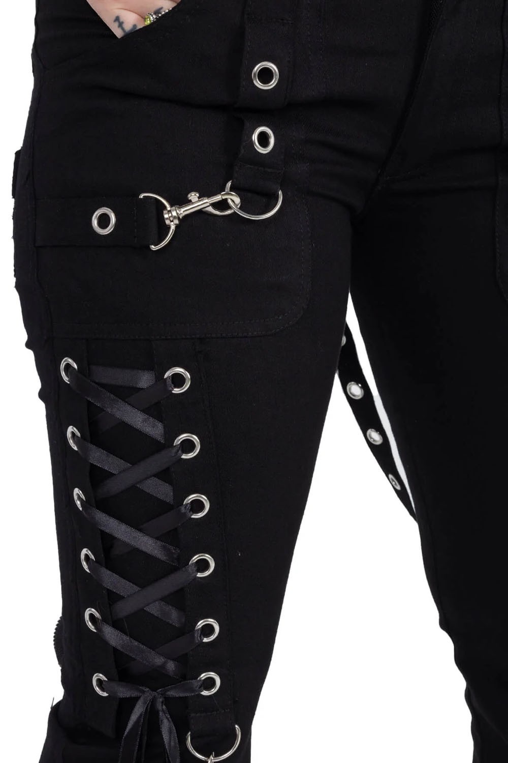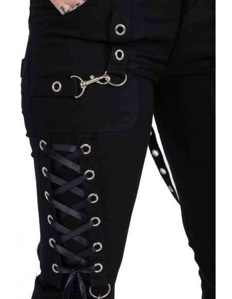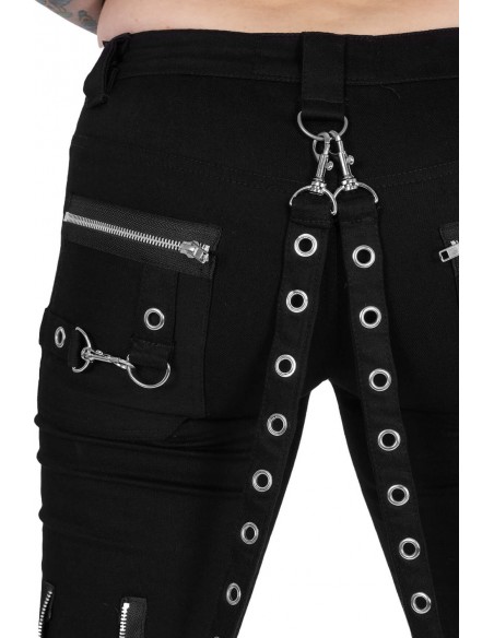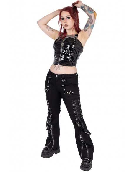 Original Devil Fashion item Shorts with straps and a fuzzy hem.With functional pockets. 38% viscose, 32% polyester, 30% vegan leather. Size information below.