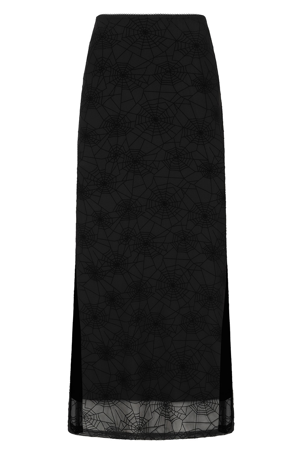 Seraphina Spiderweb Chiffon Skirt in Black - Banned