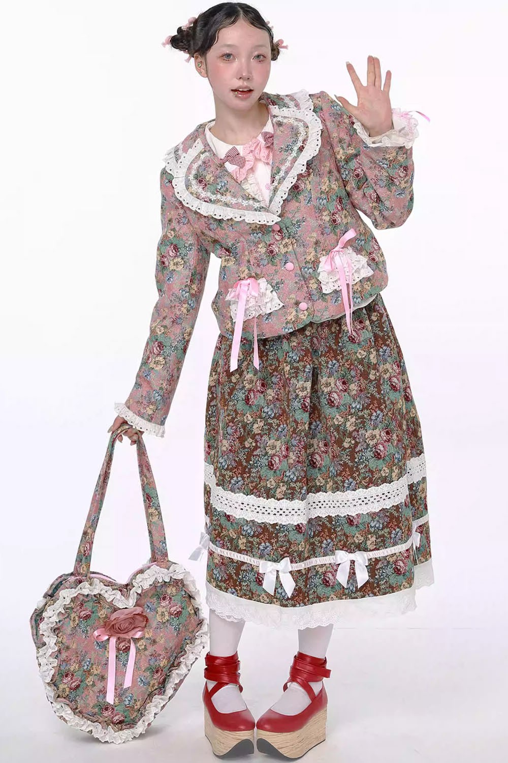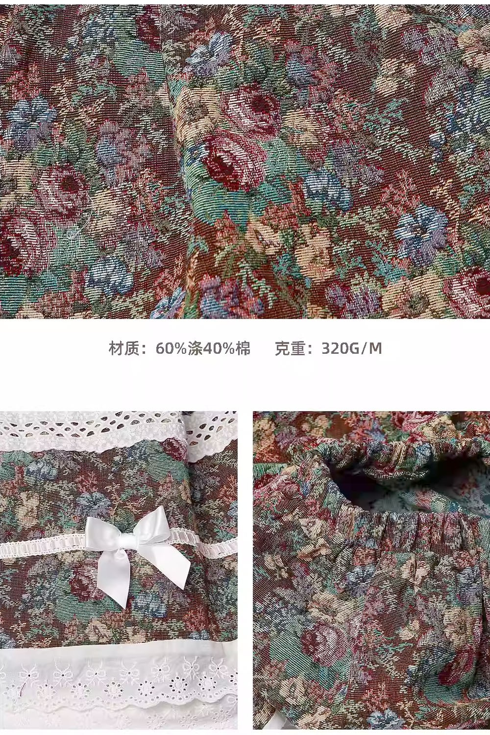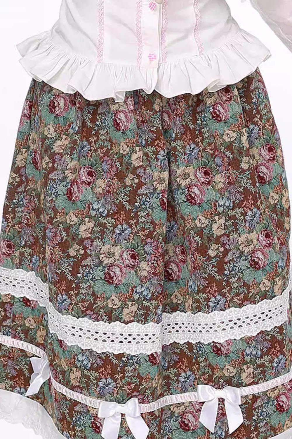 Gobelin skirt decorated with lace and bows.