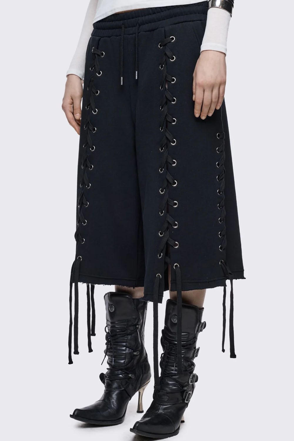 Oversized tracksuit bottoms with an elasticated waistband and lace details.