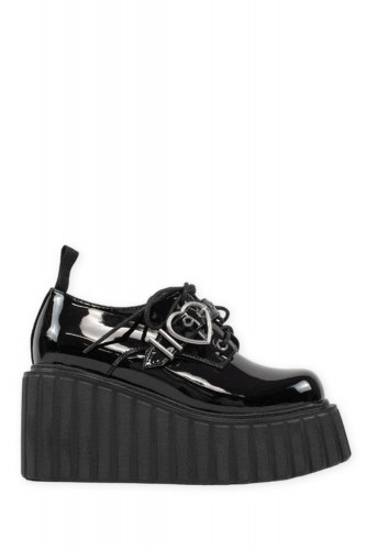 Creeper style shoes with chunky platform. Heart buckle. Vegan leather.