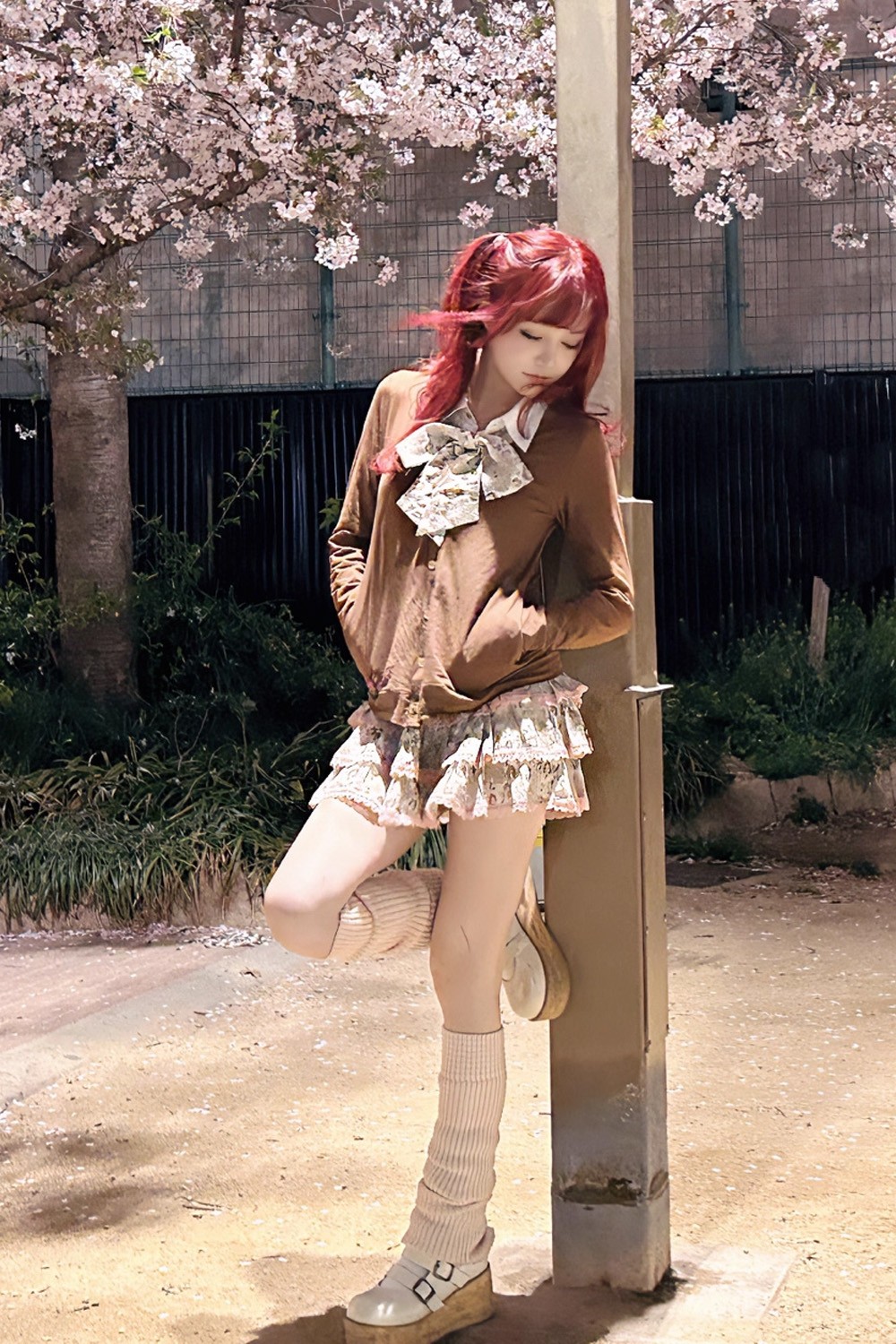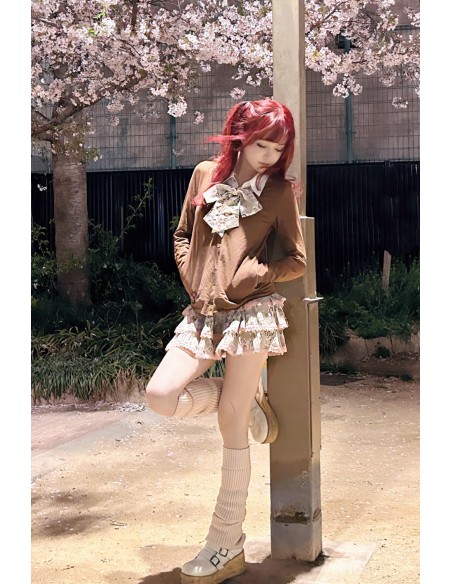 Brown Cardigan with Shirt Collar - Evil Tooth