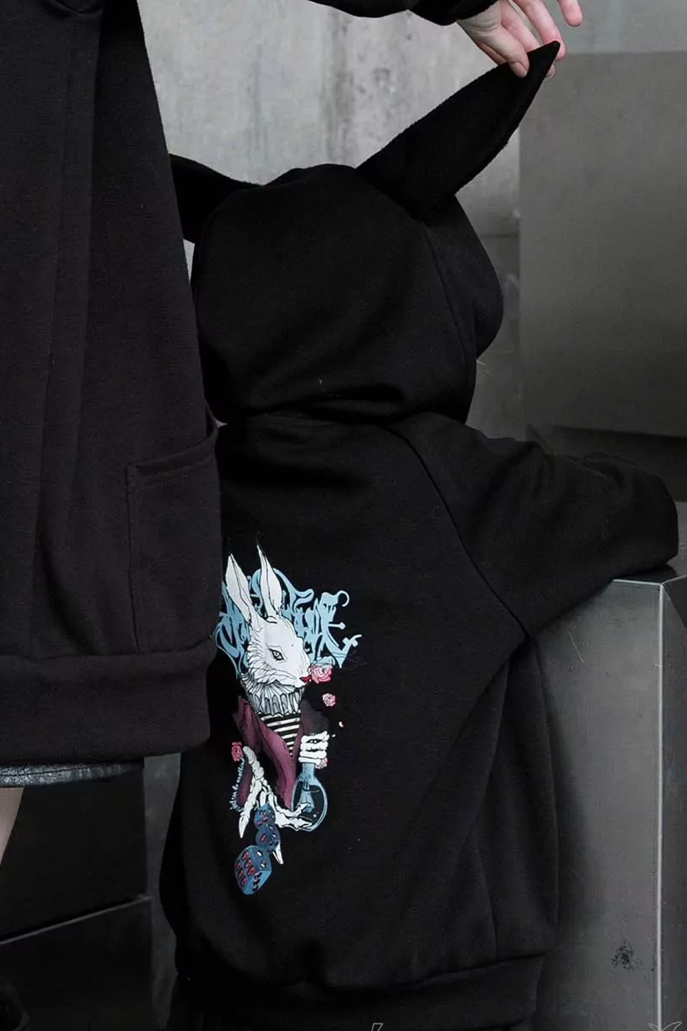 Wonder Rabbit Hoodie for Kids in Black - Punk Rave