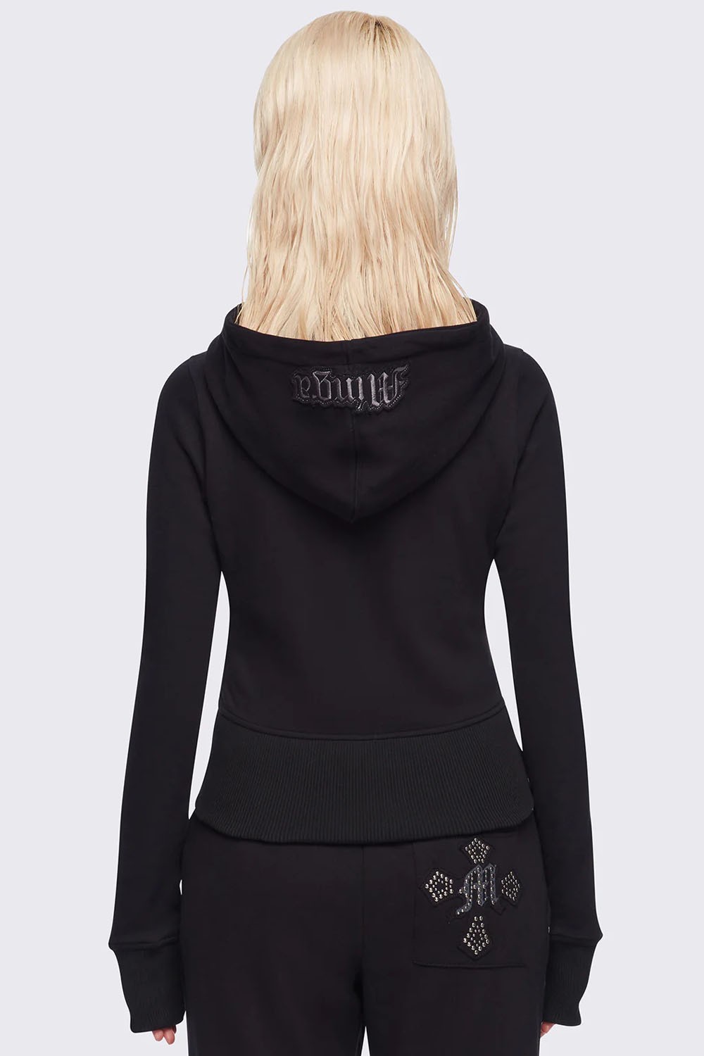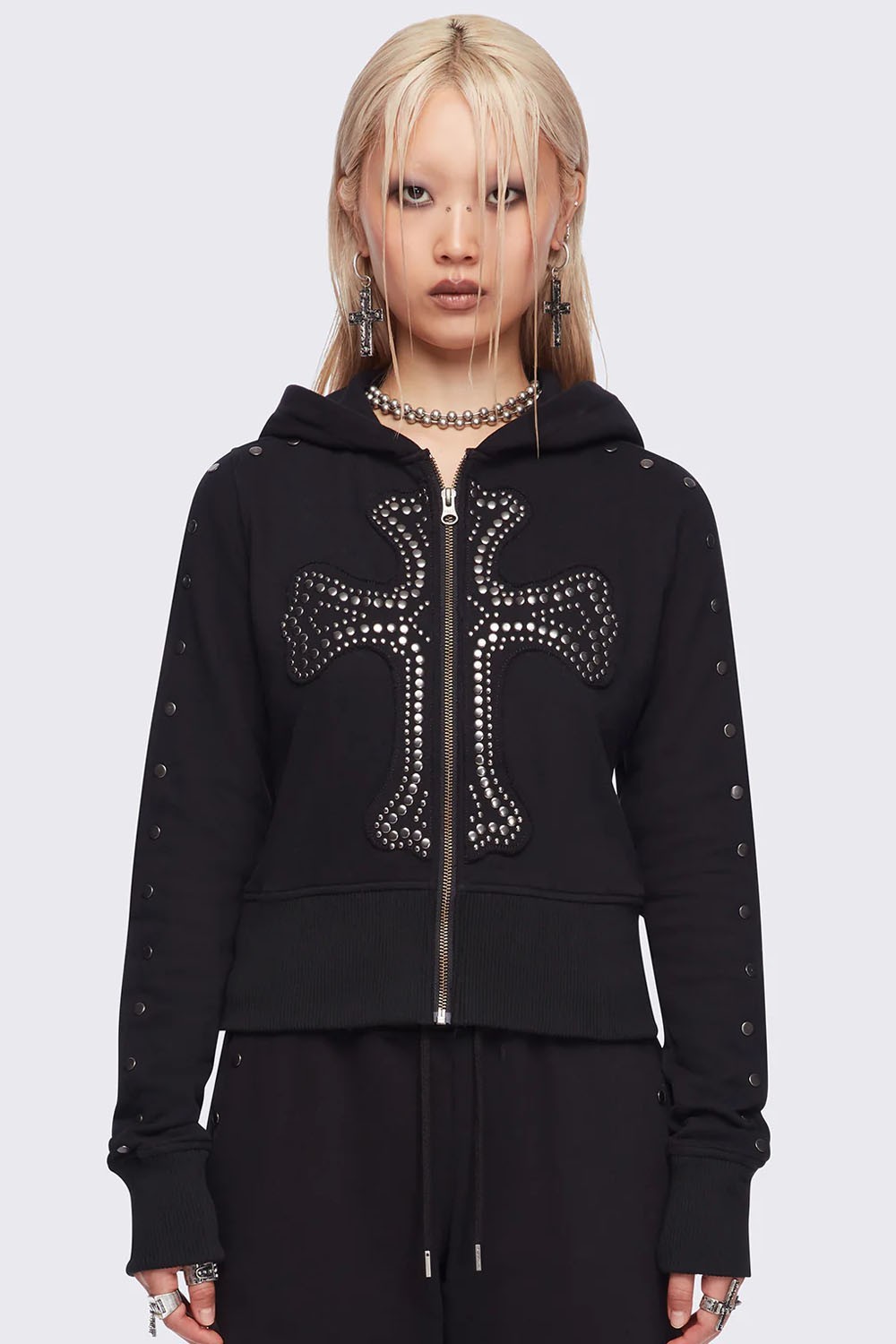 Hoodie with a studded cross design on the front.