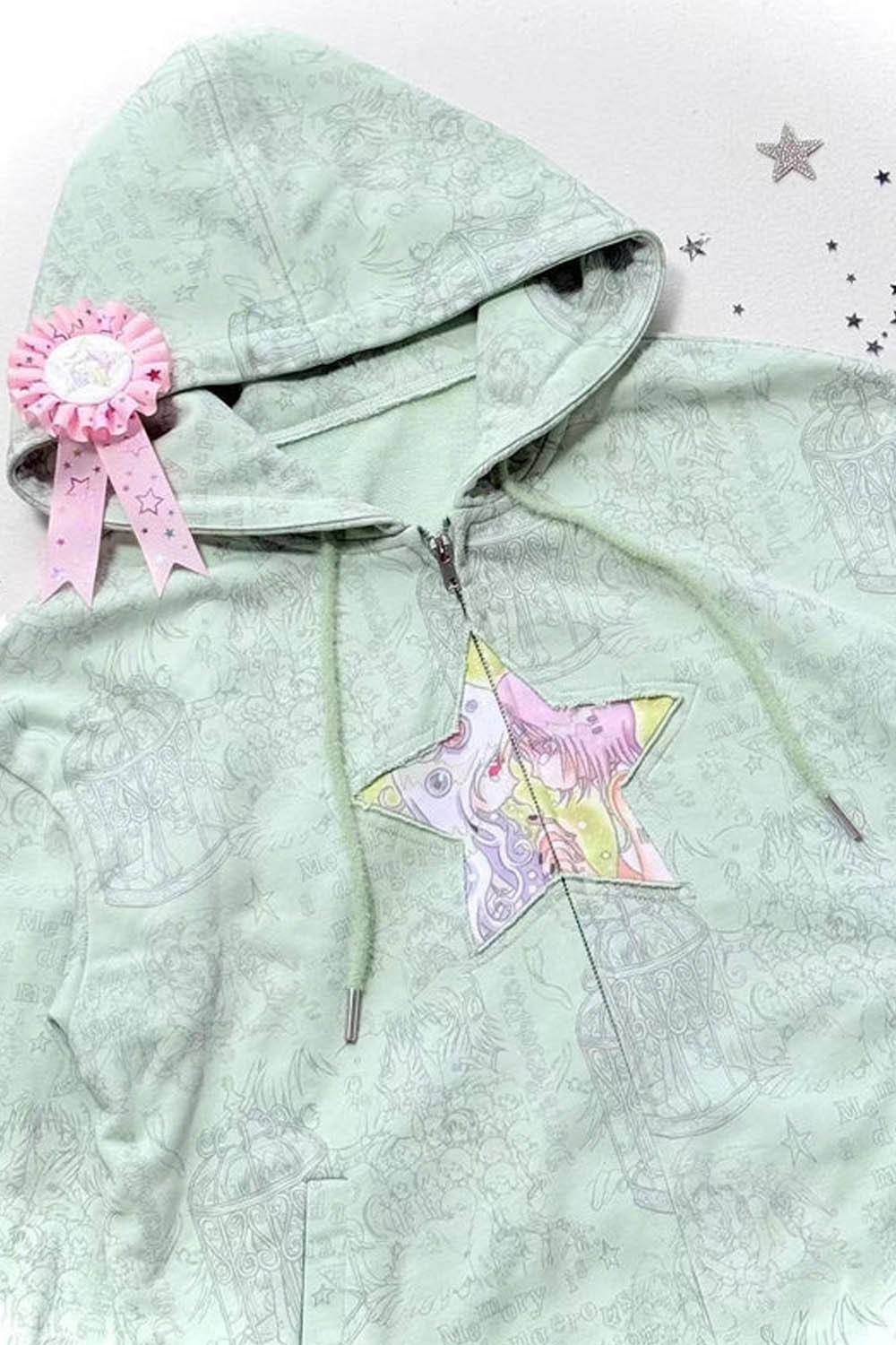 Hoodie with a star on the front and an illustration by the artist Oliwabiu.