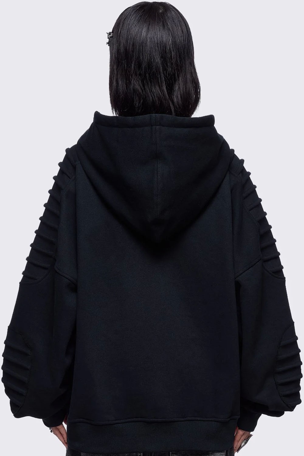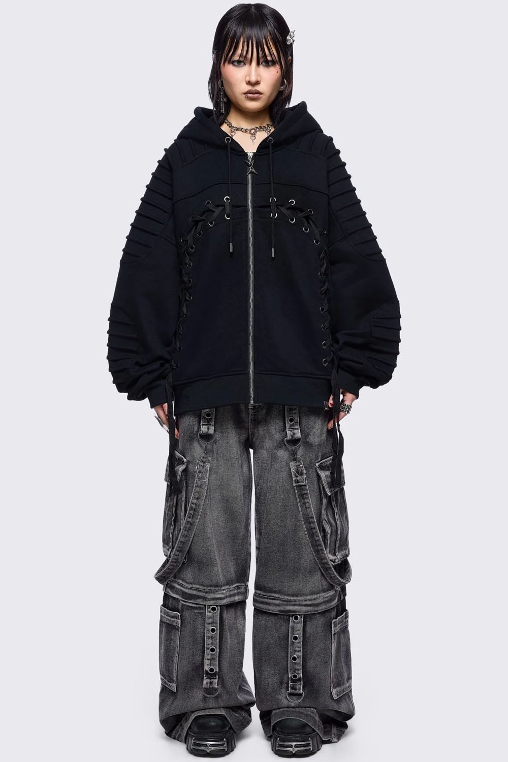 Oversized sweatshirt with multiple functional pockets and tied details.