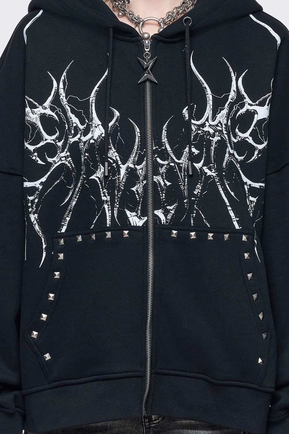 Oversized sweatshirt with multiple functional pockets and a neo-tribal print.