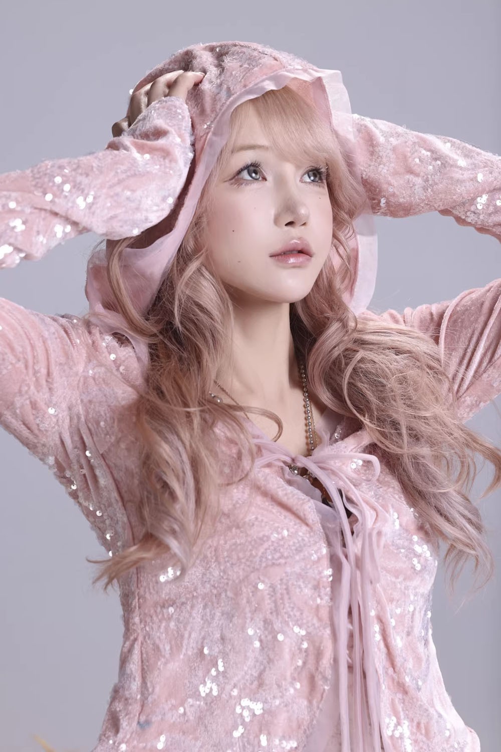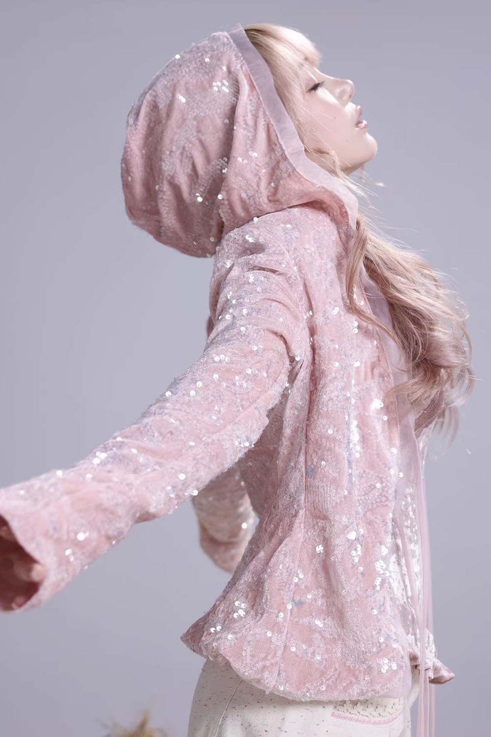 Sequin cardigan with hood.