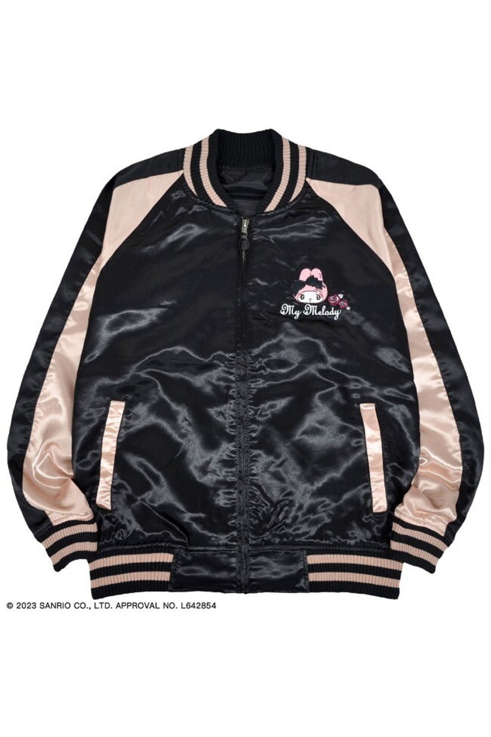 My Melody Rose Jirai Embroidered Sukajan Bomber Jacket - Black x Pink