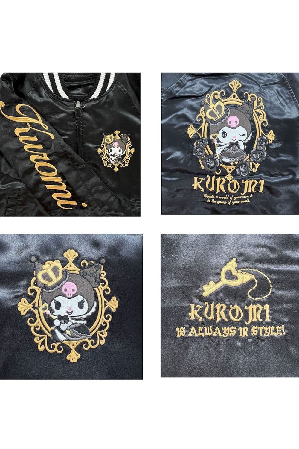 Sukajan Reversible Embroidered Bomber Jacket Kuromi and My Melody Princess - Black x Pink