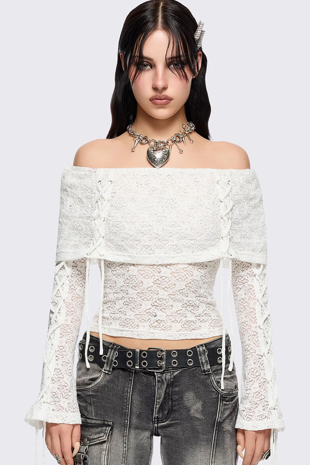 Short sleeved blouse with lace and bows.65% cotton, 35% polyester