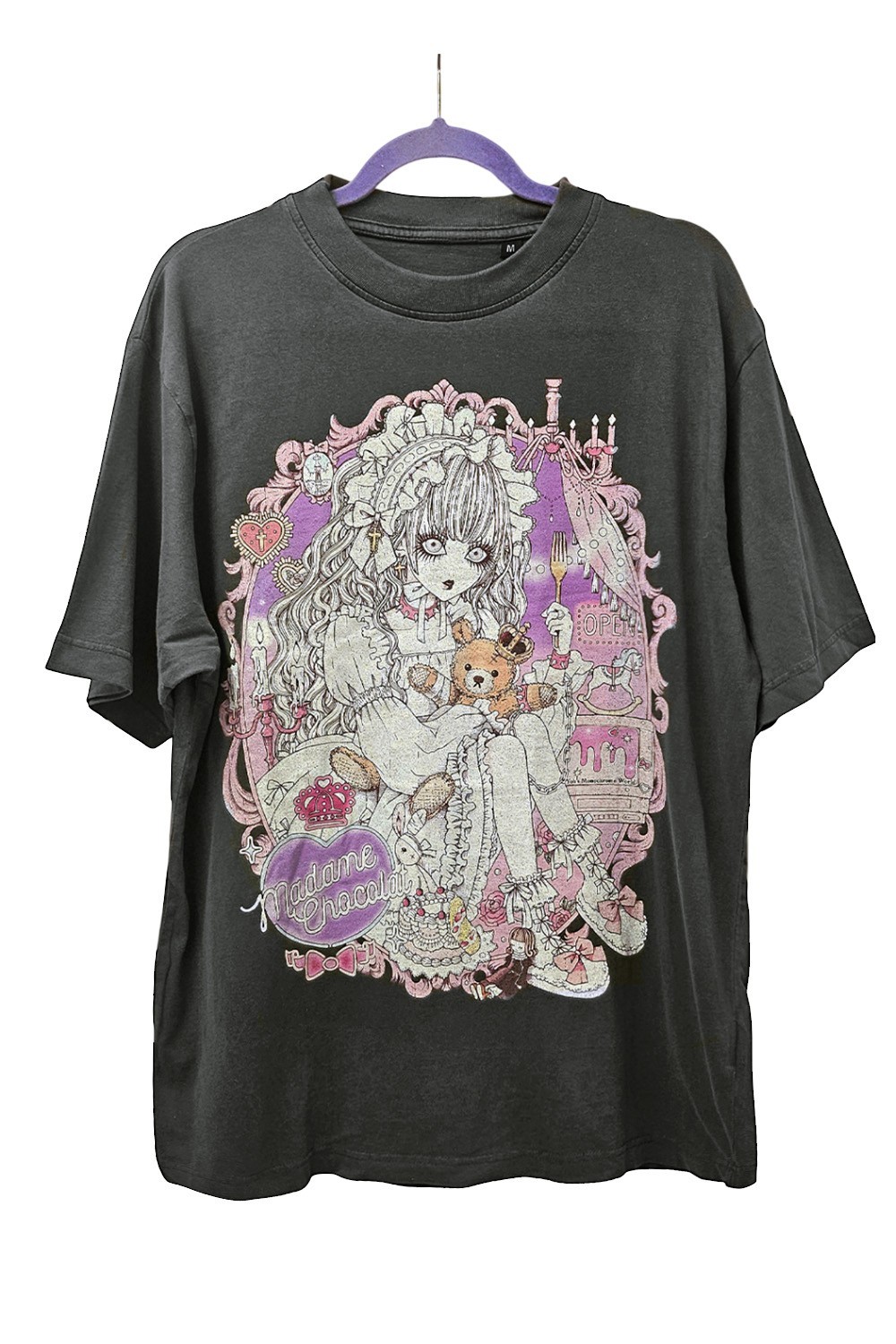 Yoh's Monochrome World x Madame Chocolat Vintage Style T-Shirt - Charcoal Grey