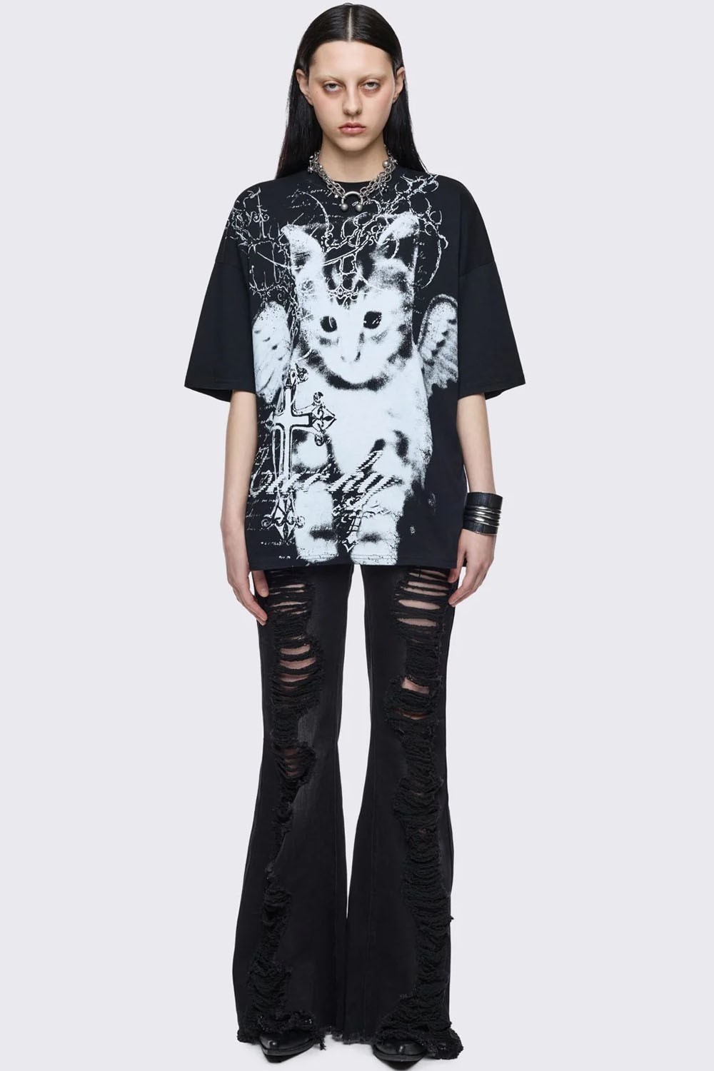 Oversized T-shirt with a cat print.