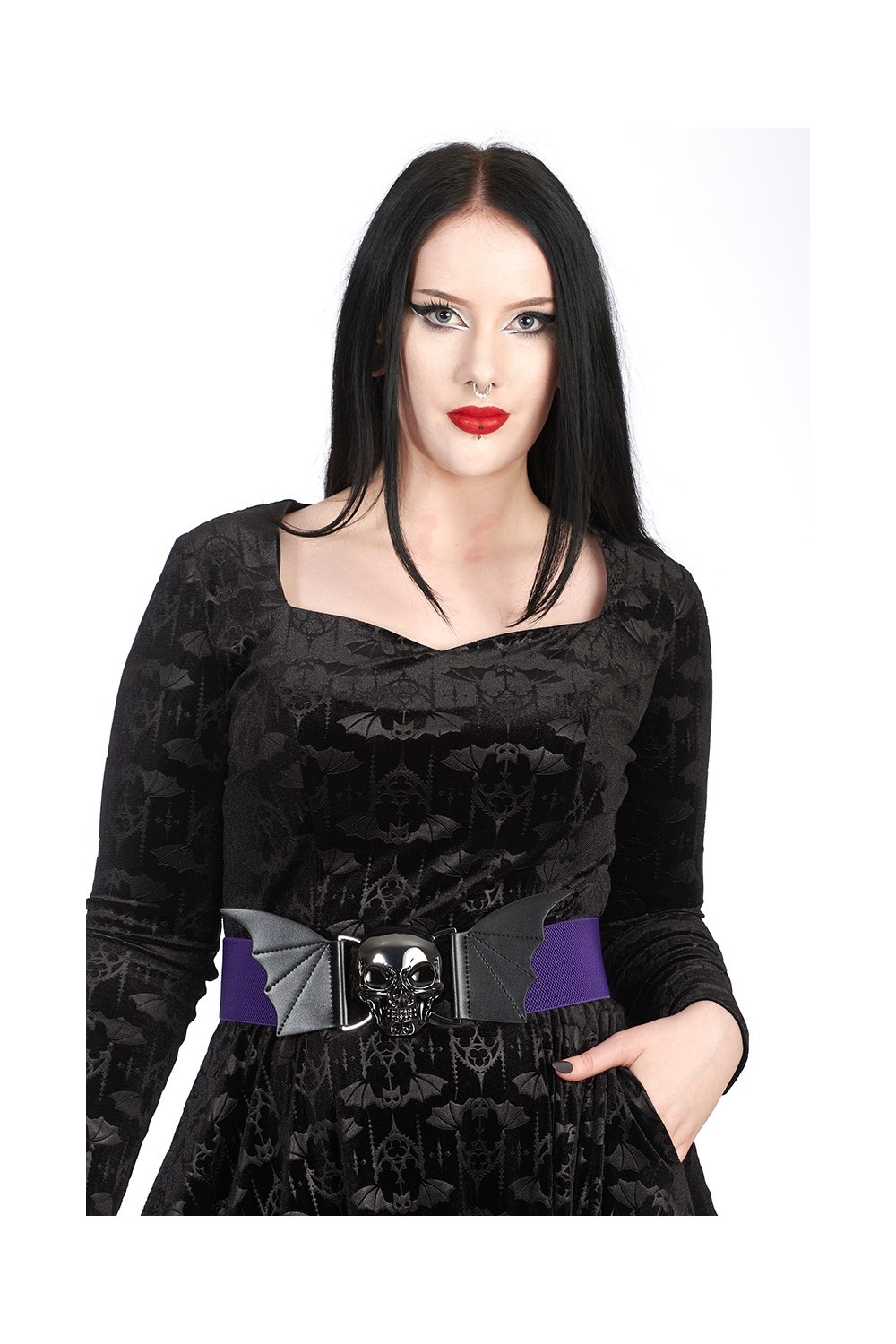 Cinturón elástico con detalle frontal de calavera con alas de murciélago.