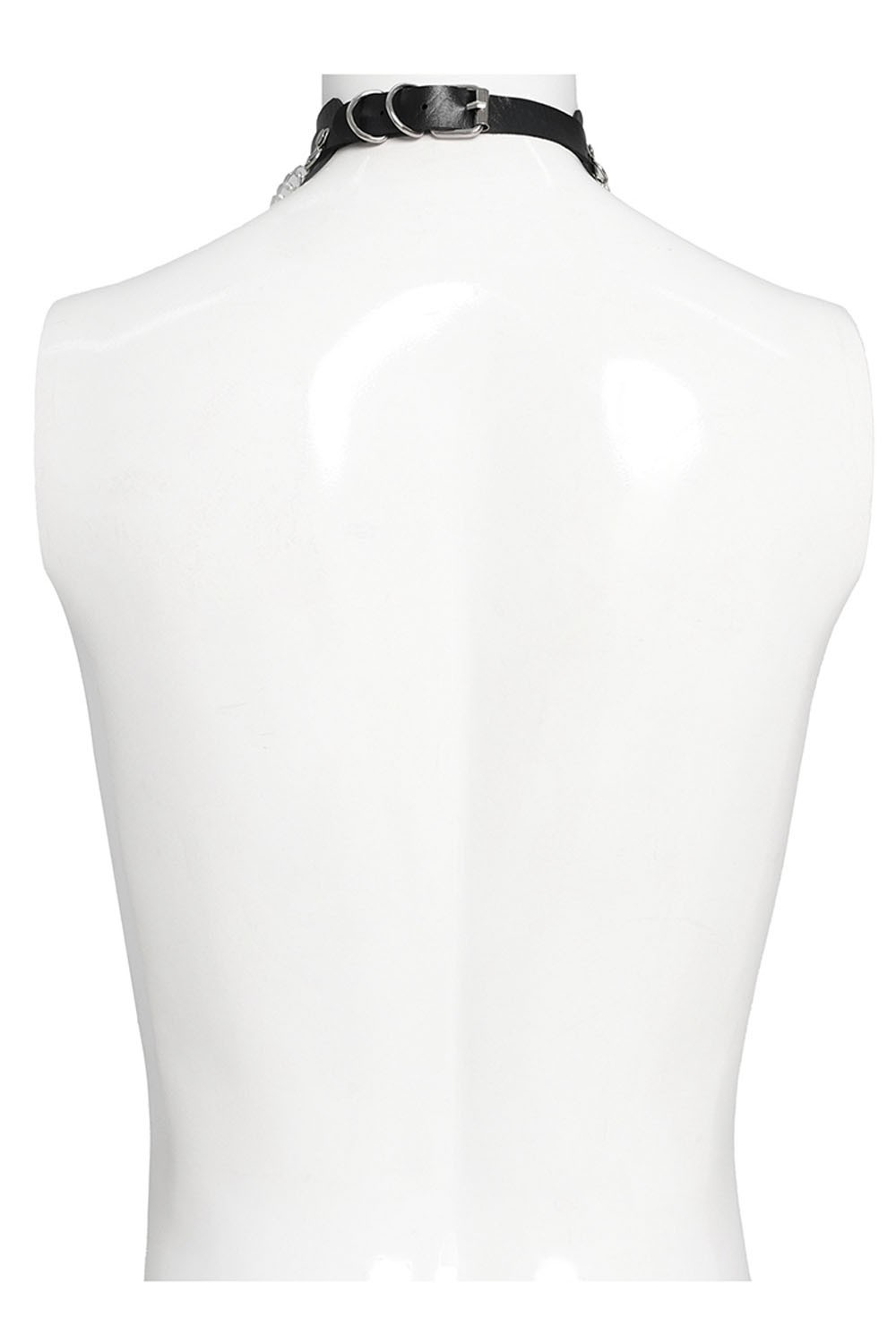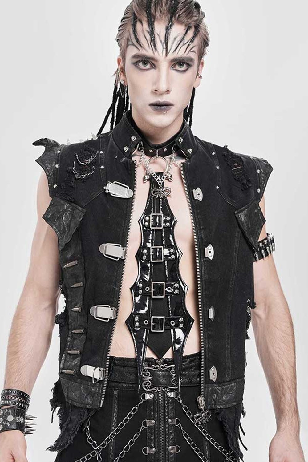 Pantalones en lona negra con cremalleras y tiras decorativas con encaje y cintas de satén.95% algodón 5% elastano
