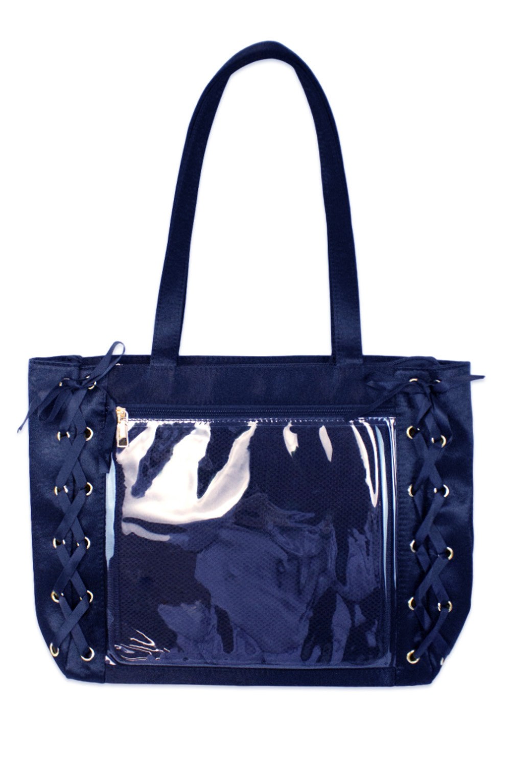 Bolso estilo Ita bag de tamaño grande. Con ventana transparente para colocar pins, chapas o pequeños objetos.