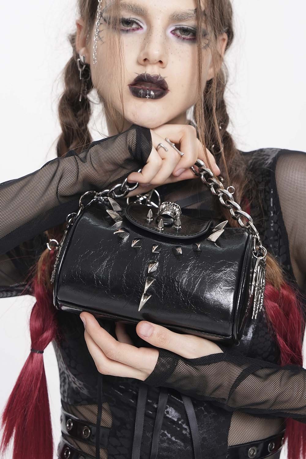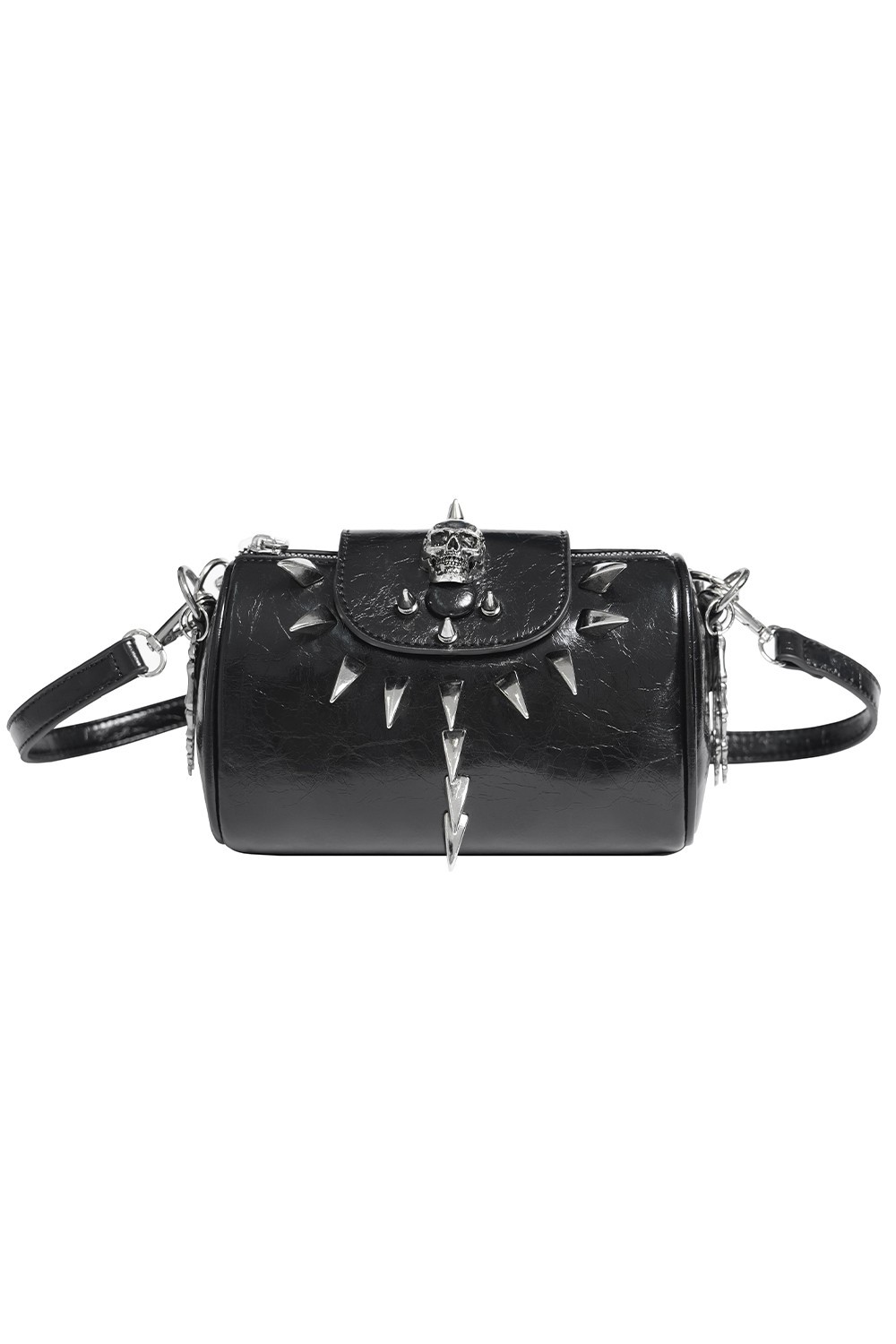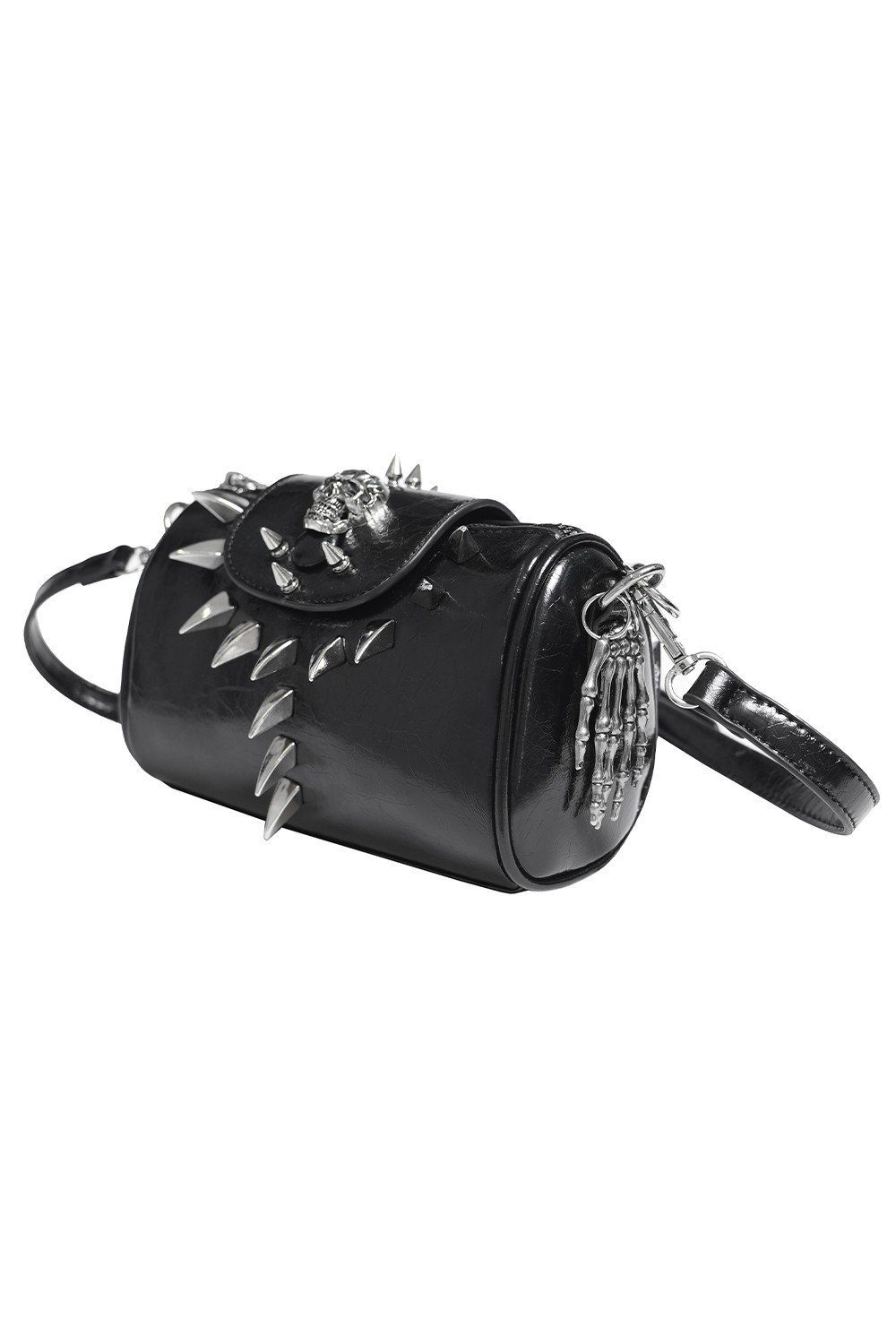 Mini bolso con correa ajustable extraíble, cadena y detalles de pinchos y calavera.
