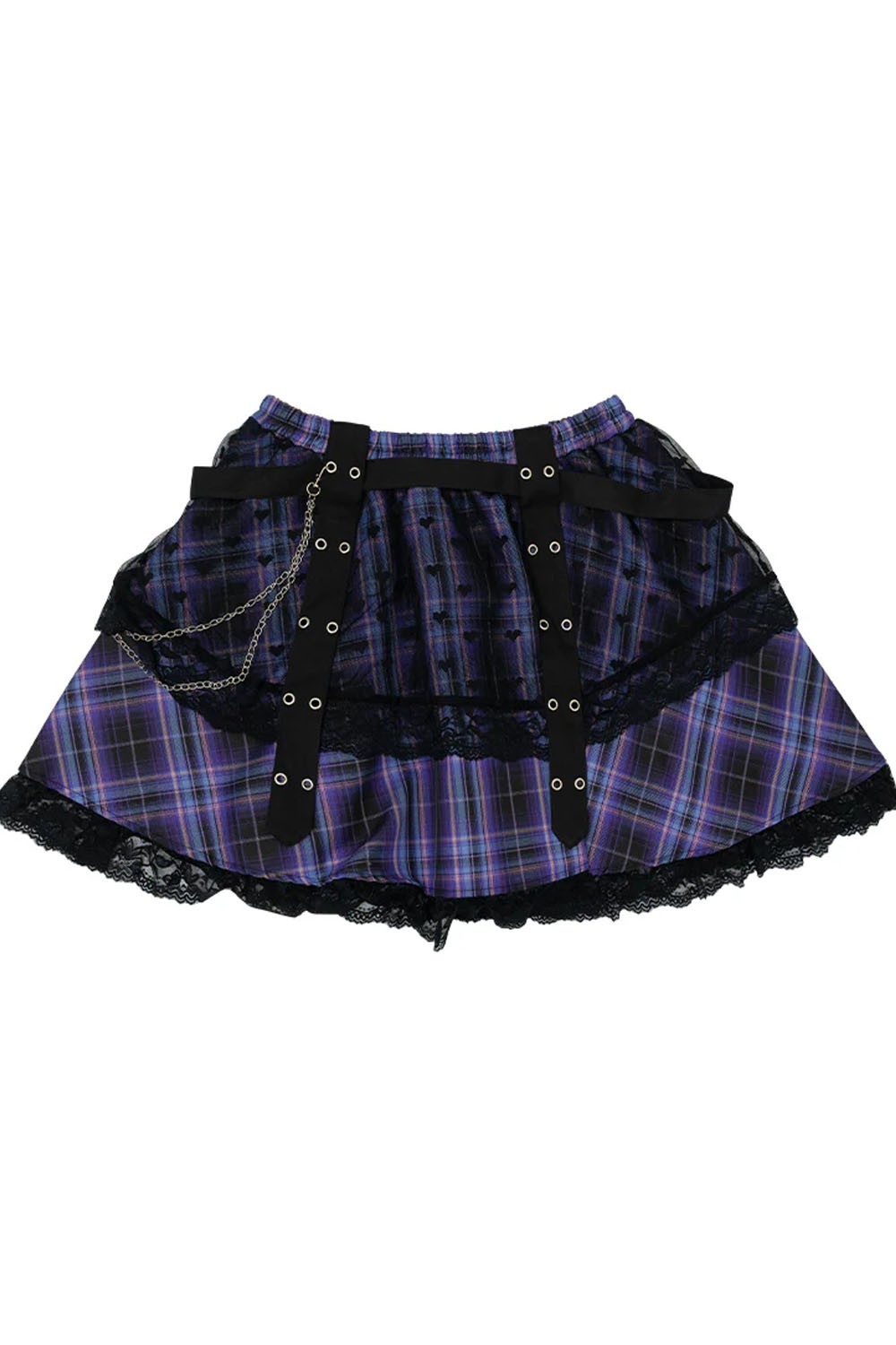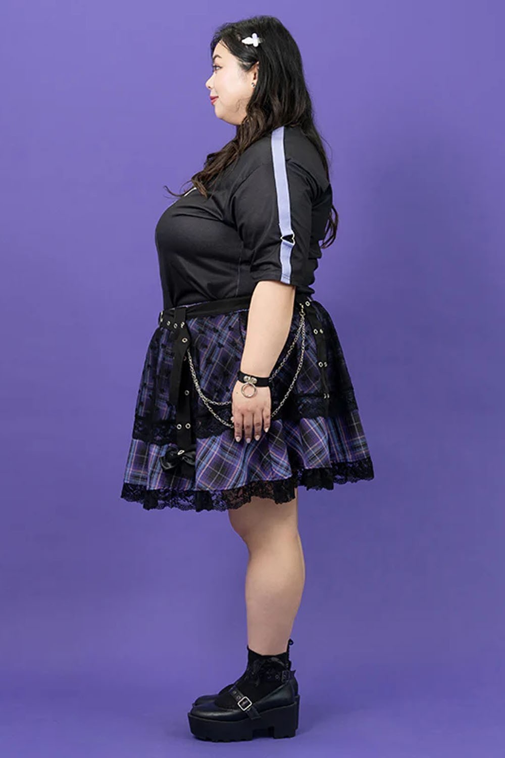 Falda de Tartán Love Punk en Negro x Lila (Plus Size) - ACDC RAG