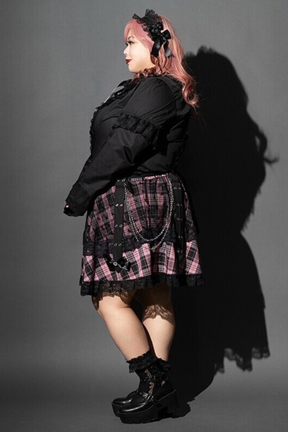 Falda de Tartán Love Punk en Negro x Rosa (Plus Size) - ACDC RAG