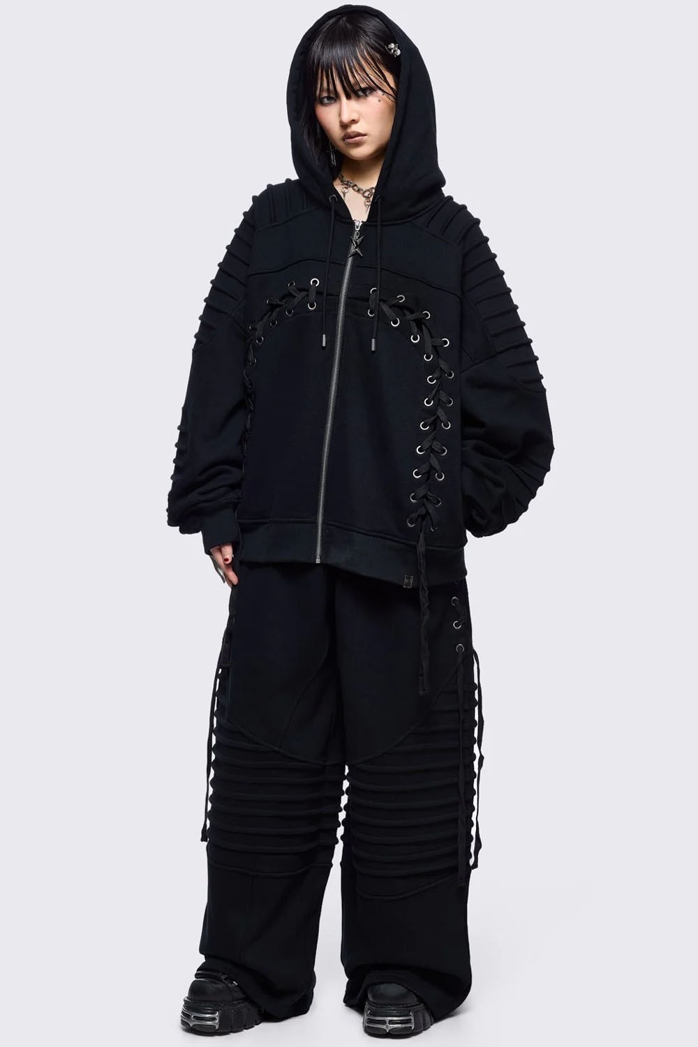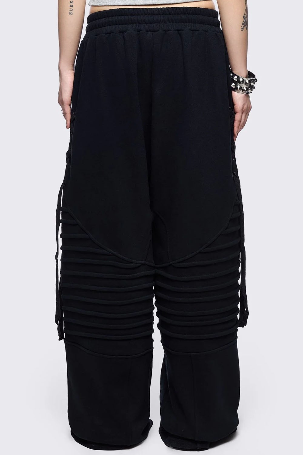 Pantalón deportivo de corte oversized con cintura elástica con cintas decorativas laterales.