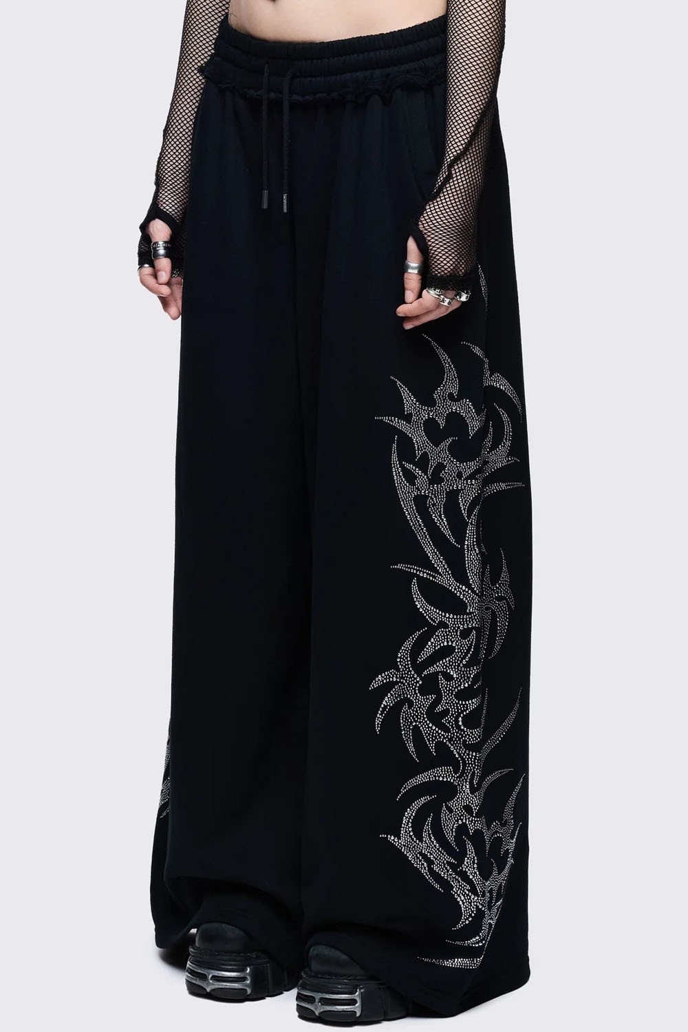 Pantalón deportivo de corte oversized con cintura elástica y decorado de tachuelas.