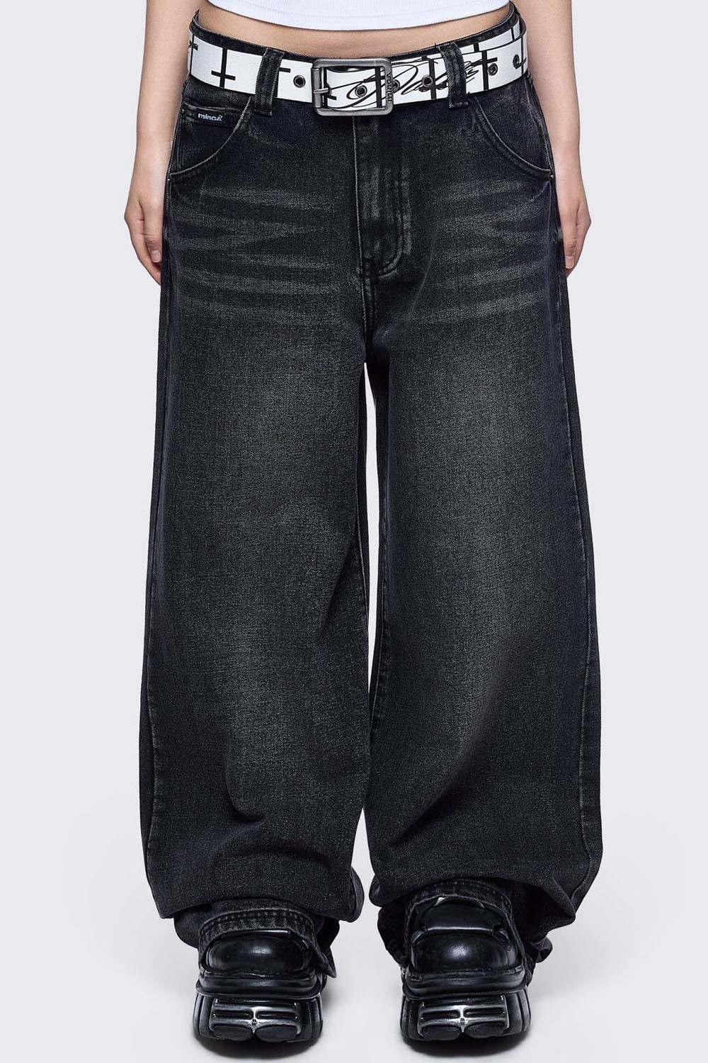 Pantalón denim oversized con bolsillos funcionales y print posterior de alas de ángel.