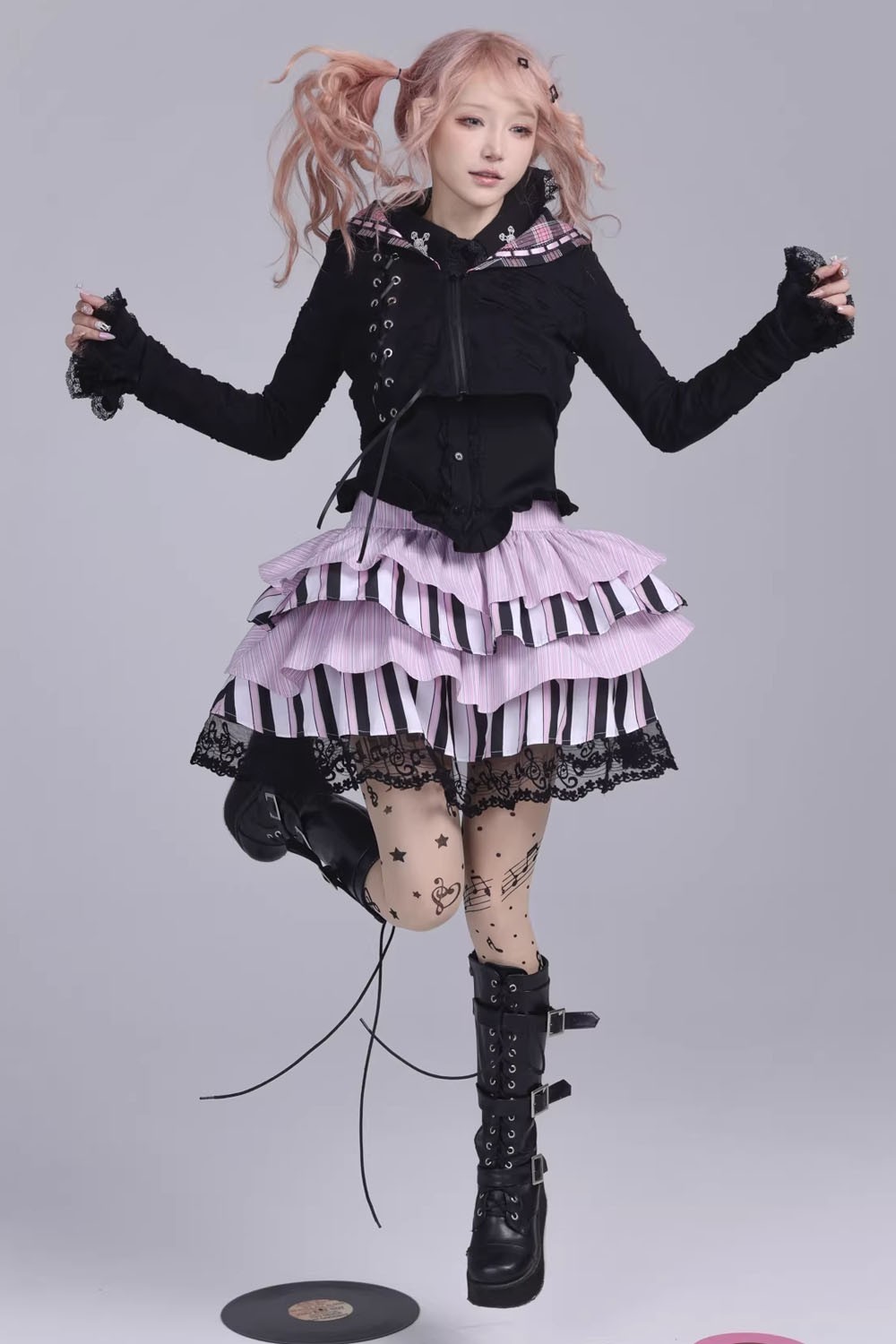 Falda de varias capas con puntilla y encaje de notas musicales.