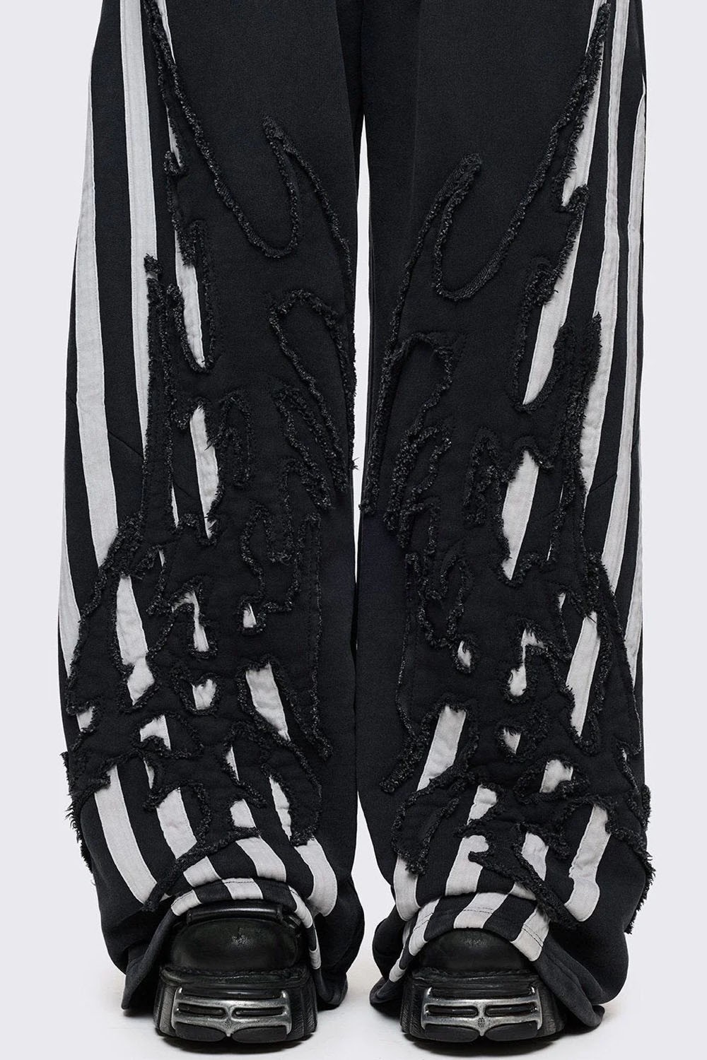 Pantalón de pata ancha con motivo neotribal y de rayas.