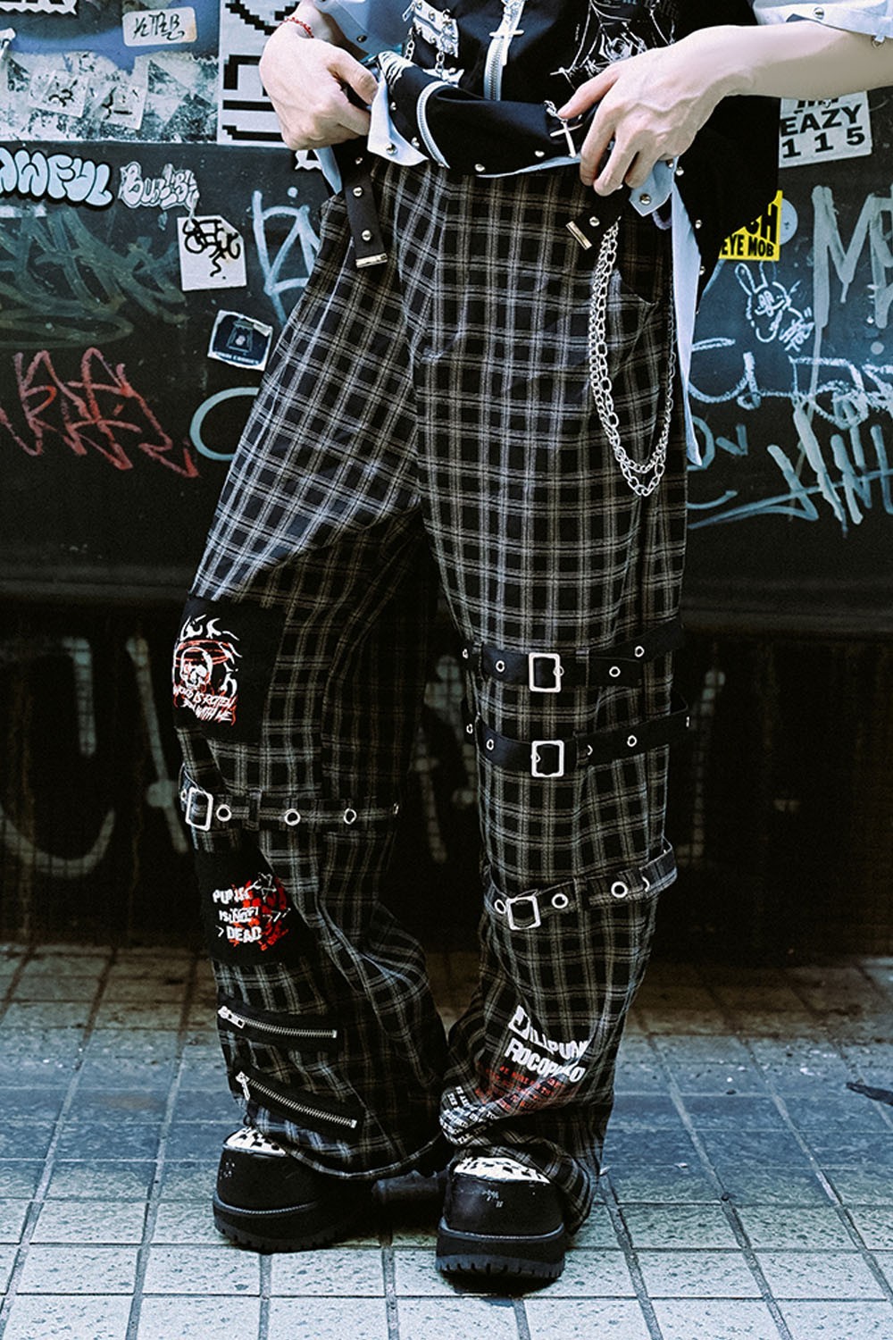Pantalón de tartán con detalles metálicos y sobrefalda .