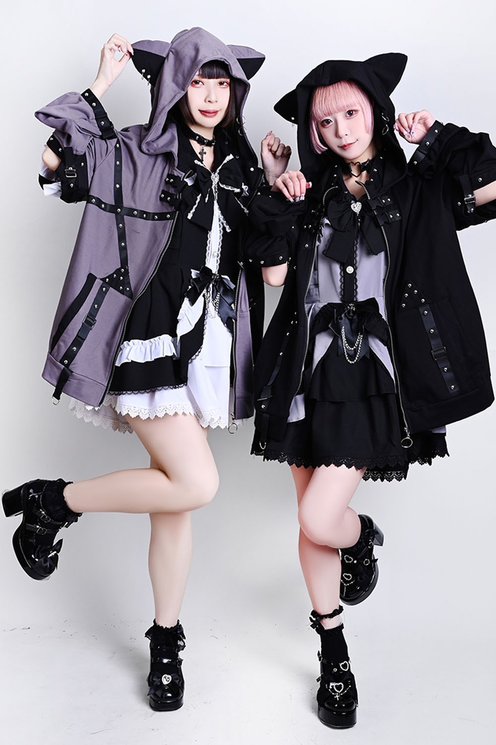 Sudadera Punk Rock Cat en Gris - Jill Punk