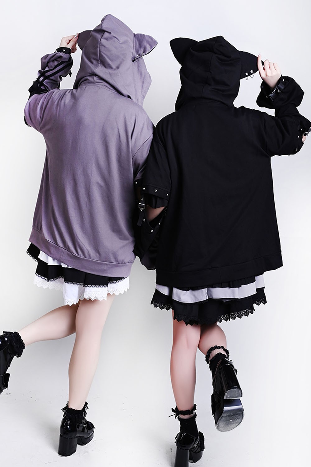 Sudadera con capucha de mangas desmontables con capucha de orejitas.
