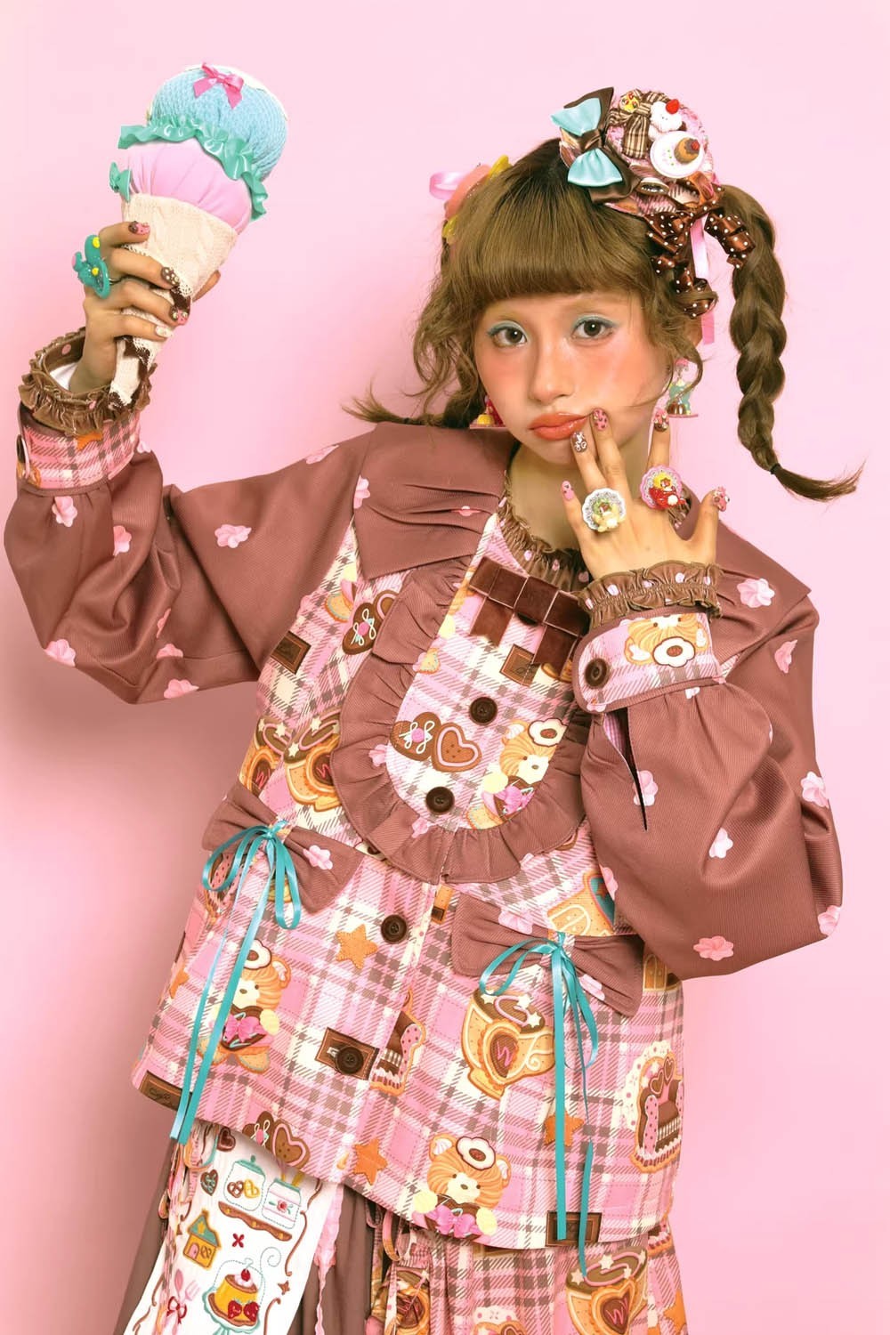 Chaqueta con print de galletitas y bolsillos frontales funcionales.