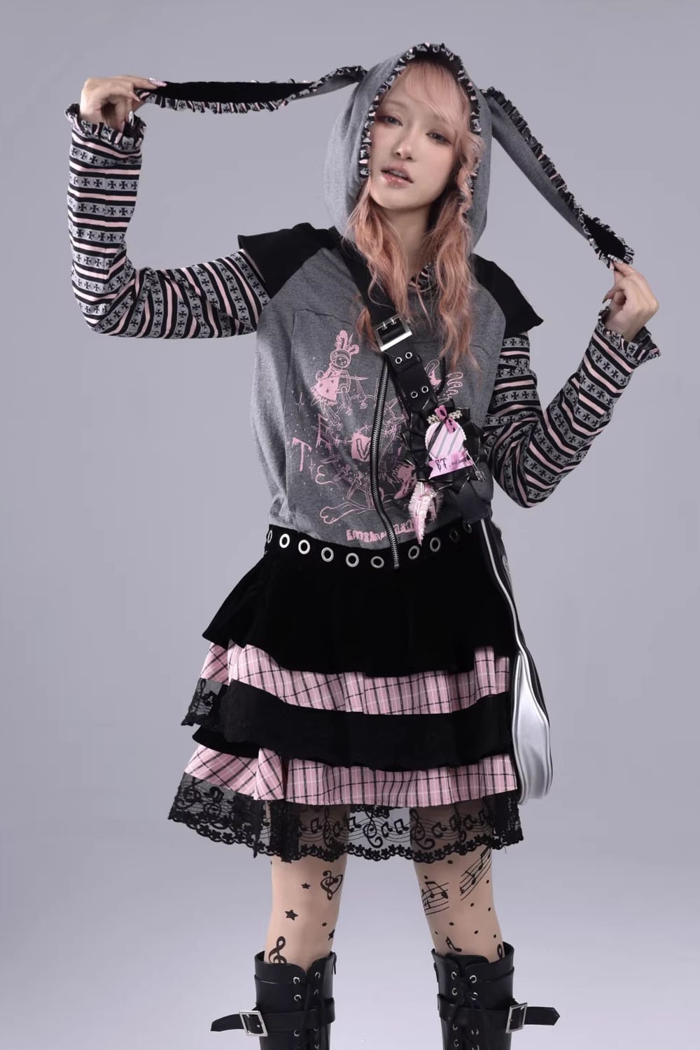 Sudadera con Capucha Punk Bunny Gris - Evil Tooth