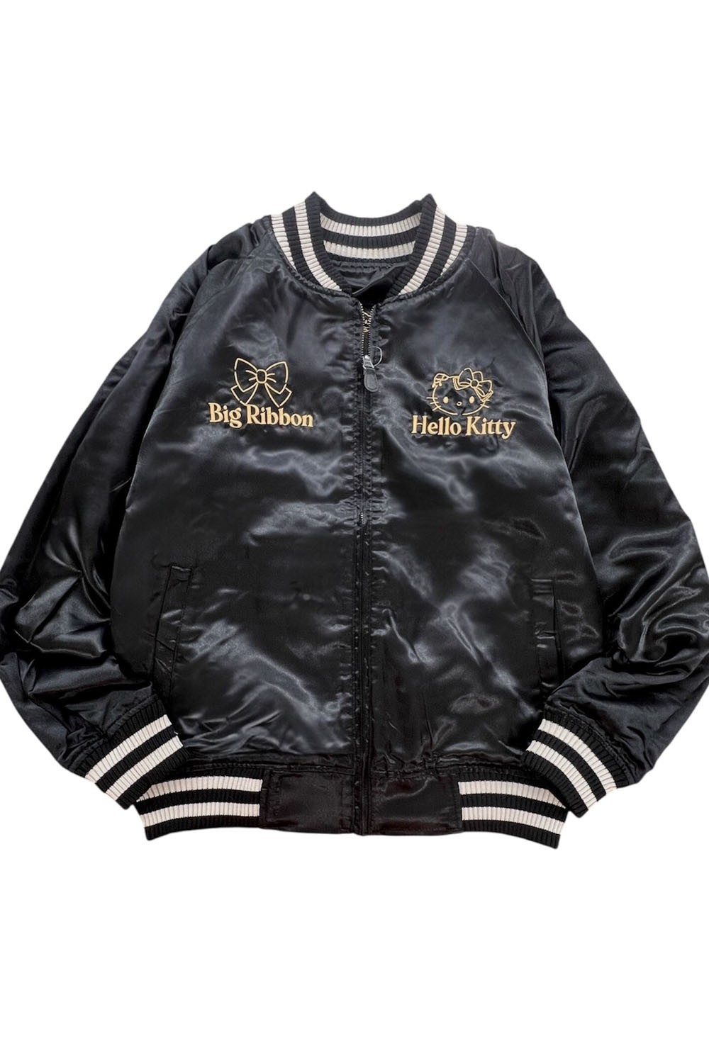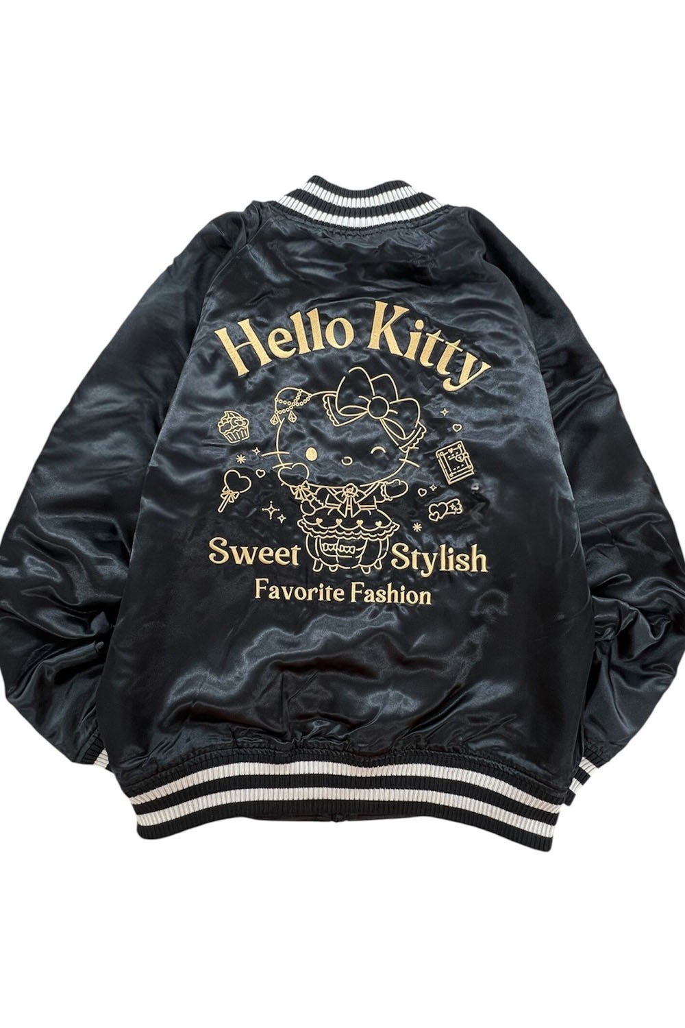 Chaqueta Bomber Sukajan Reversible Bordada Hello Kitty Lolita - Negro x Plata