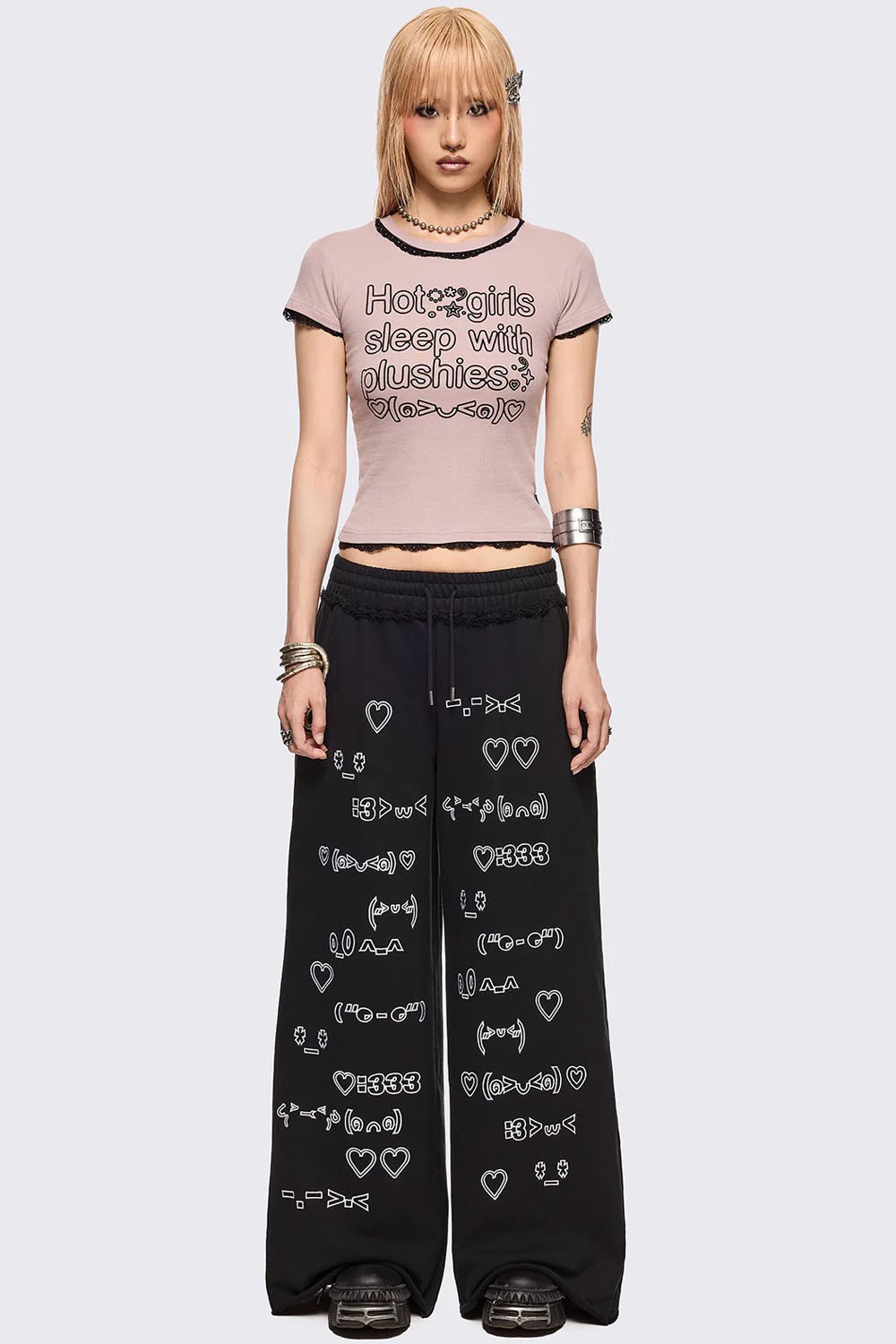 Camiseta baby tee con texto y puntilla