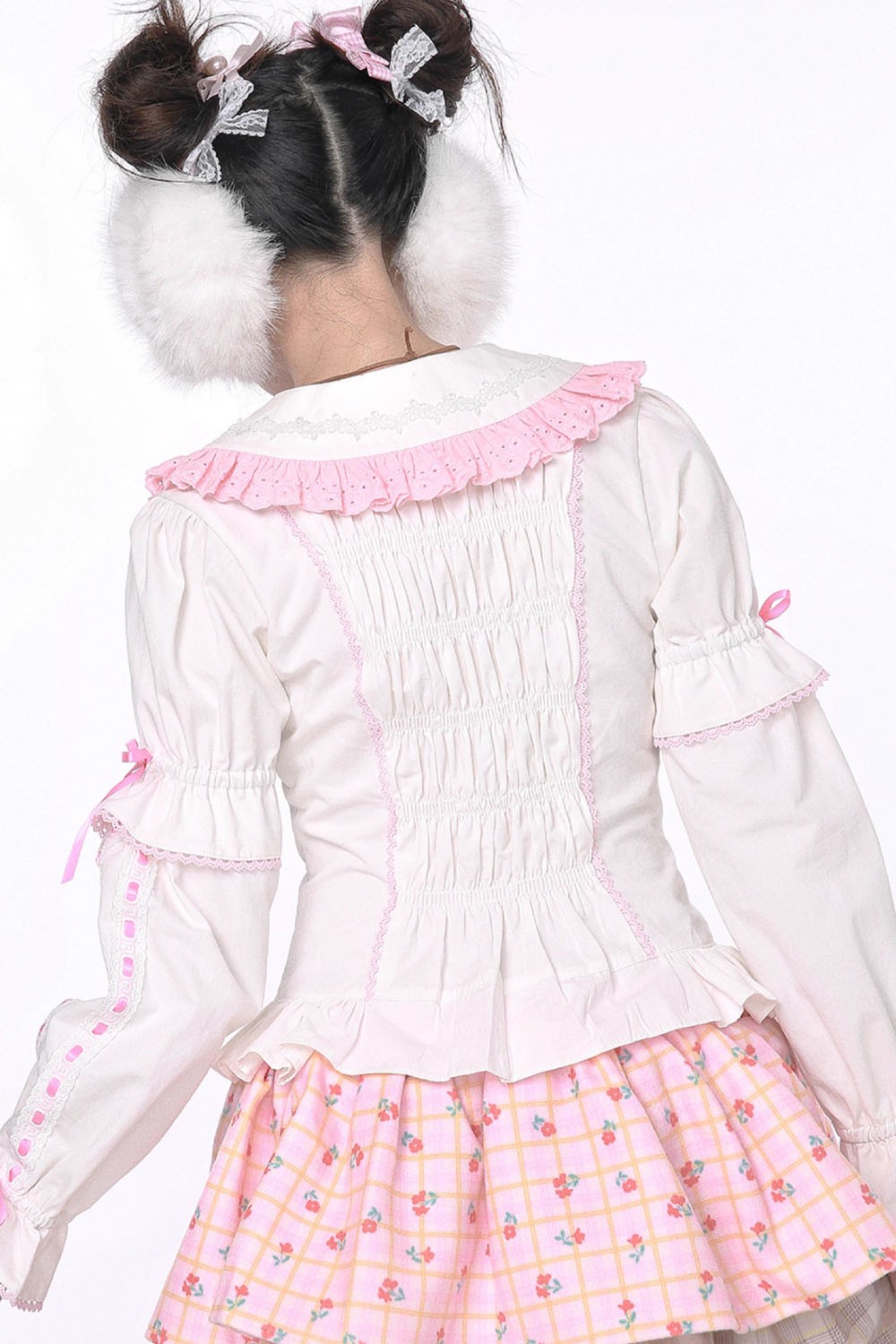 Blusa Blanca de Manga Larga Retro Bow  ~ SOS MEME CLUB