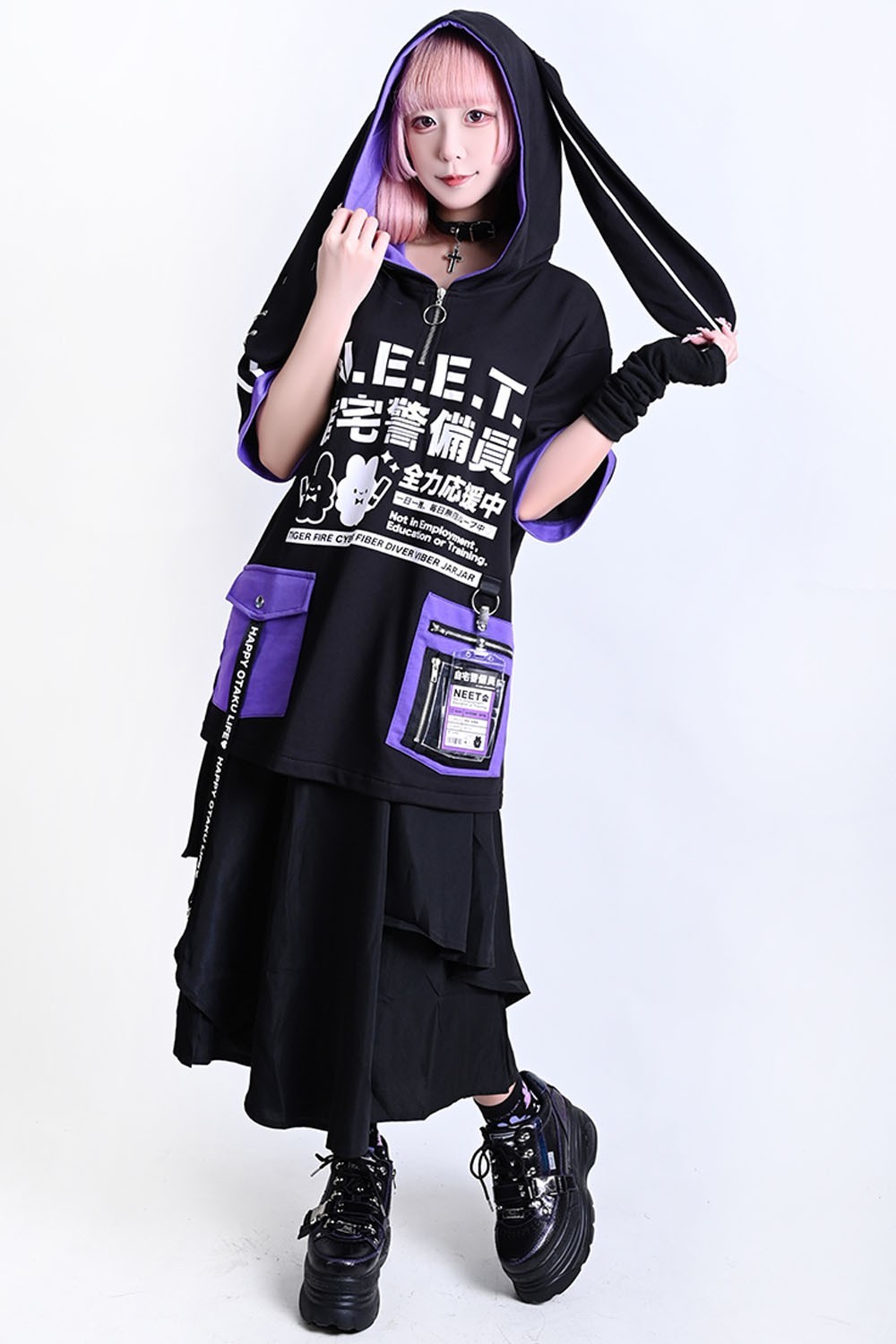 Top con Orejas Neet en Negro x Lila - Jill Punk