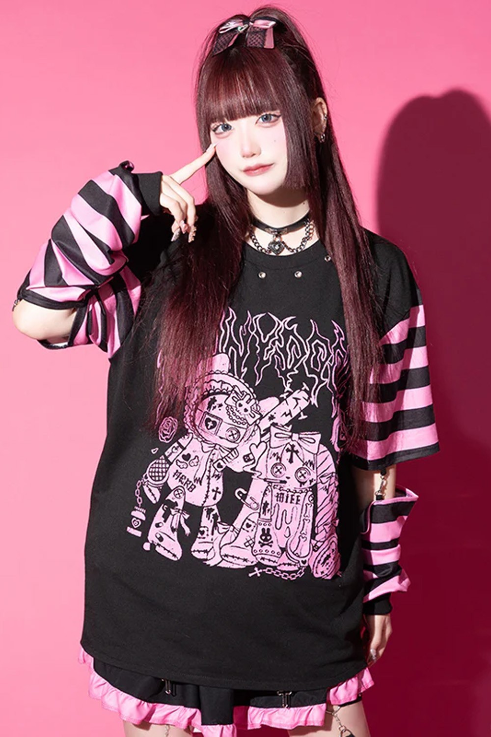 Camiseta Oversized Punky Bunny en Negro x Rosa - ACDC Rag