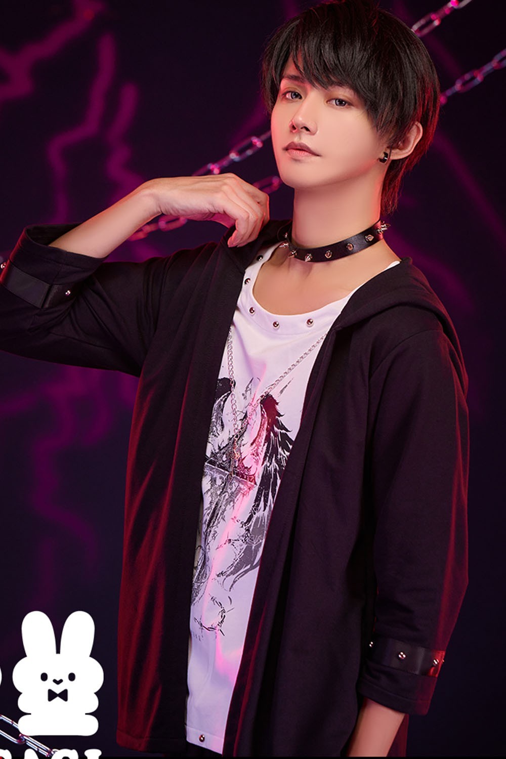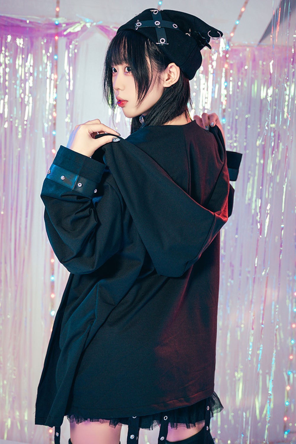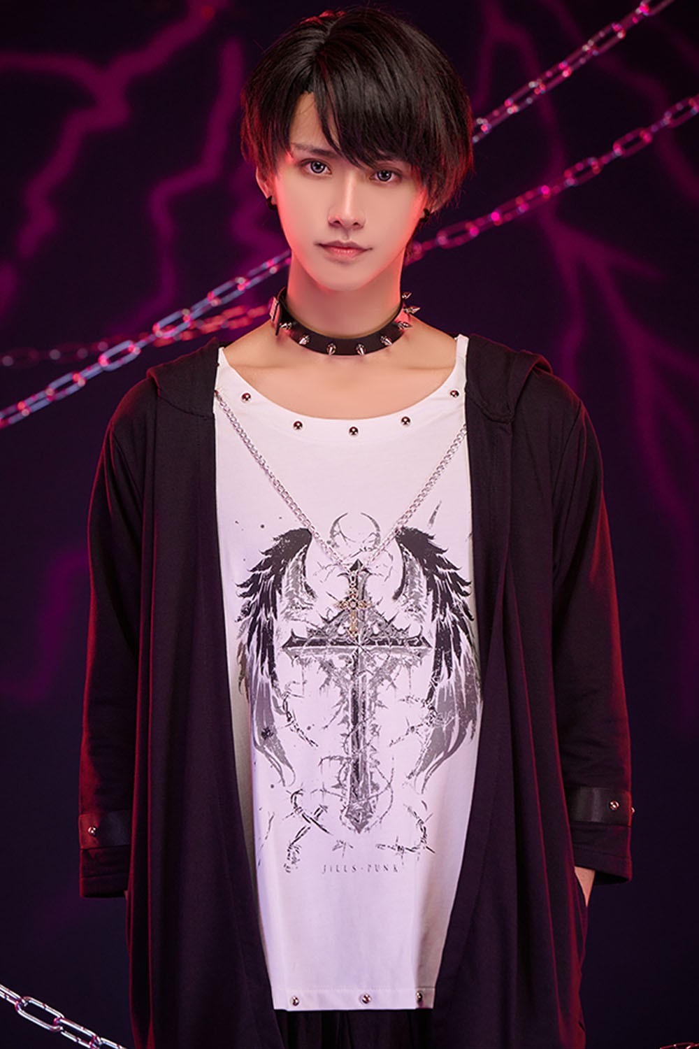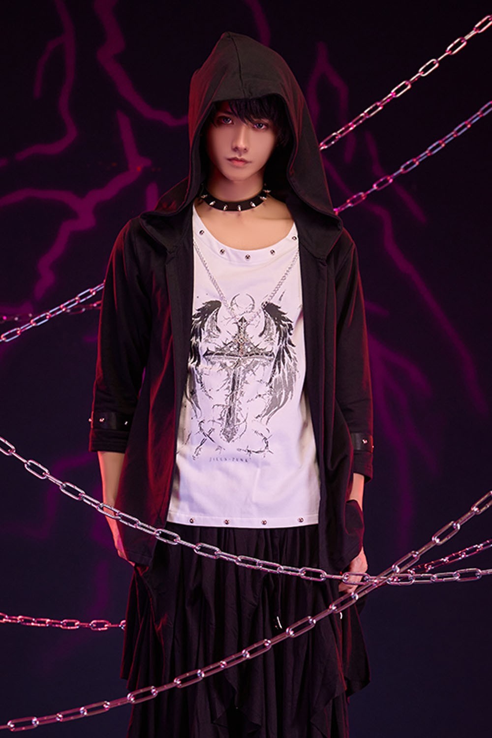 Top Efecto dos Piezas con Capucha Crossed Angel en Blanco x Negro - Jill Punk